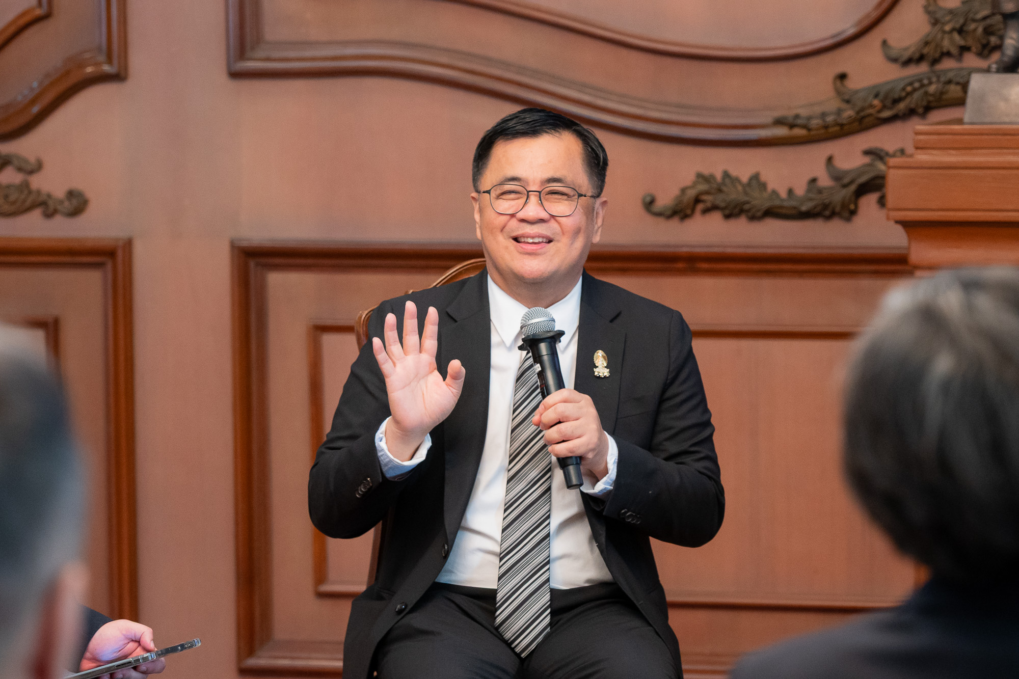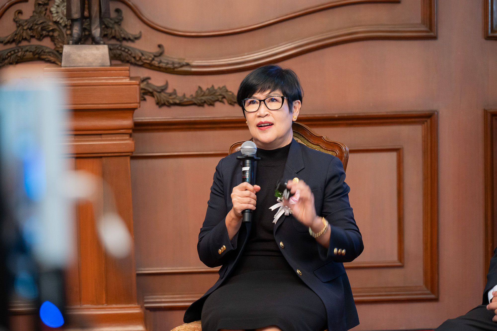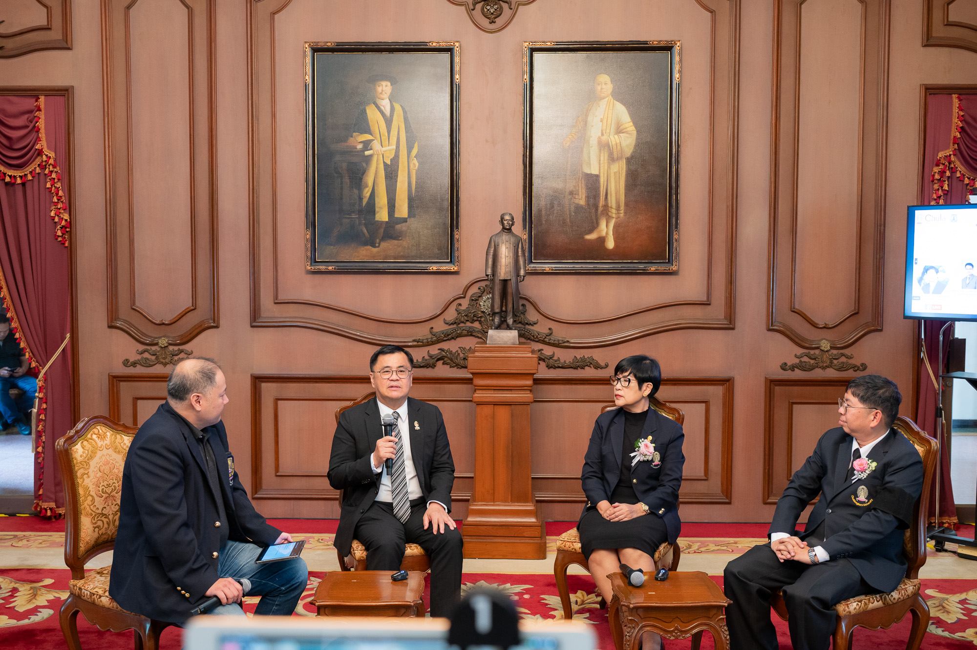 หลังจากพิธีมอบรางวัล ศ.ดร.วิเลิศ ภูริวัชร อธิการบดี ศ.ดร.บุษกร บิณฑสันต์ อาจารย์แบบอย่างสภาคณาจารย์ สาขามนุษยศาสตร์ ศ.ดร.ธีรยุทธ วิไลวัลย์ อาจารย์แบบอย่างสภาคณาจารย์ สาขาวิทยาศาสตร์เทคโนโลยี ร่วมการเสวนาหัวข้อ “อาจารย์แบบอย่าง: ผู้นำแห่งปัญญาในยุคเปลี่ยนผ่าน” เพื่อสะท้อนบทบาทของอาจารย์ในสังคมปัจจุบันที่ไม่เพียงเป็นผู้ถ่ายทอดความรู้ แต่ต้องเป็นผู้นำทางปัญญา สร้างแรงบันดาลใจ และปลูกฝังคุณค่าความเป็นมนุษย์ในยุคแห่งความเปลี่ยนแปลง ดำเนินการเสวนาโดย ศ.ดร.พิชญ์ ศุภผล คณะอนุกรรมการกิจการคณาจารย์ สภาคณาจารย์จุฬาฯ