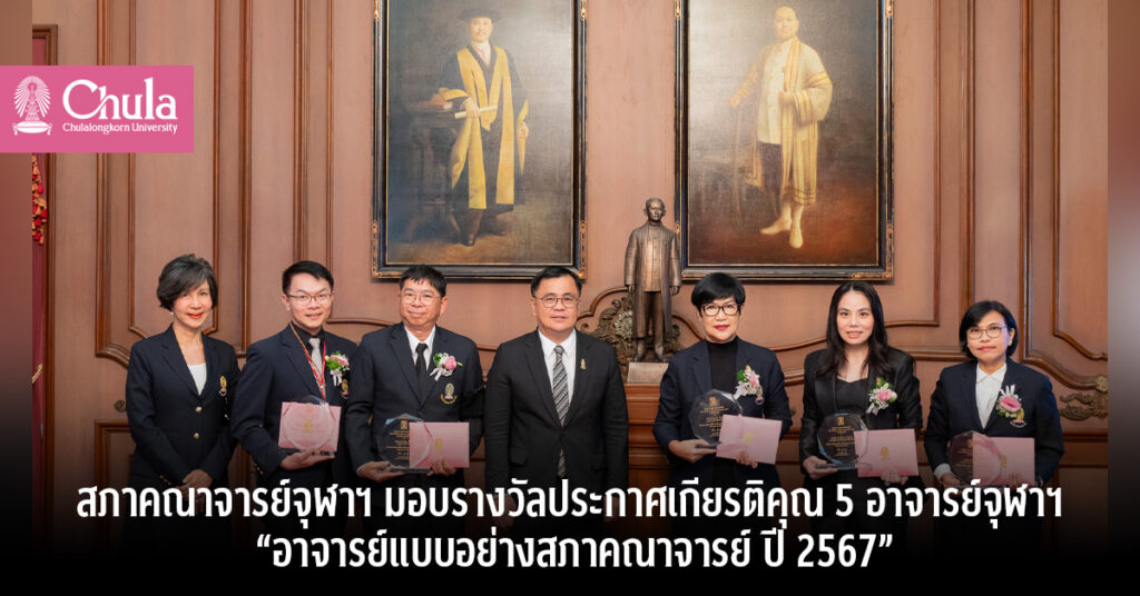 ในปีการศึกษา 2567 คณาจารย์จุฬาฯ ที่ได้รับรางวัลประกาศเกียรติคุณ “อาจารย์แบบอย่างสภาคณาจารย์” สาขาต่าง ๆ ได้แก่