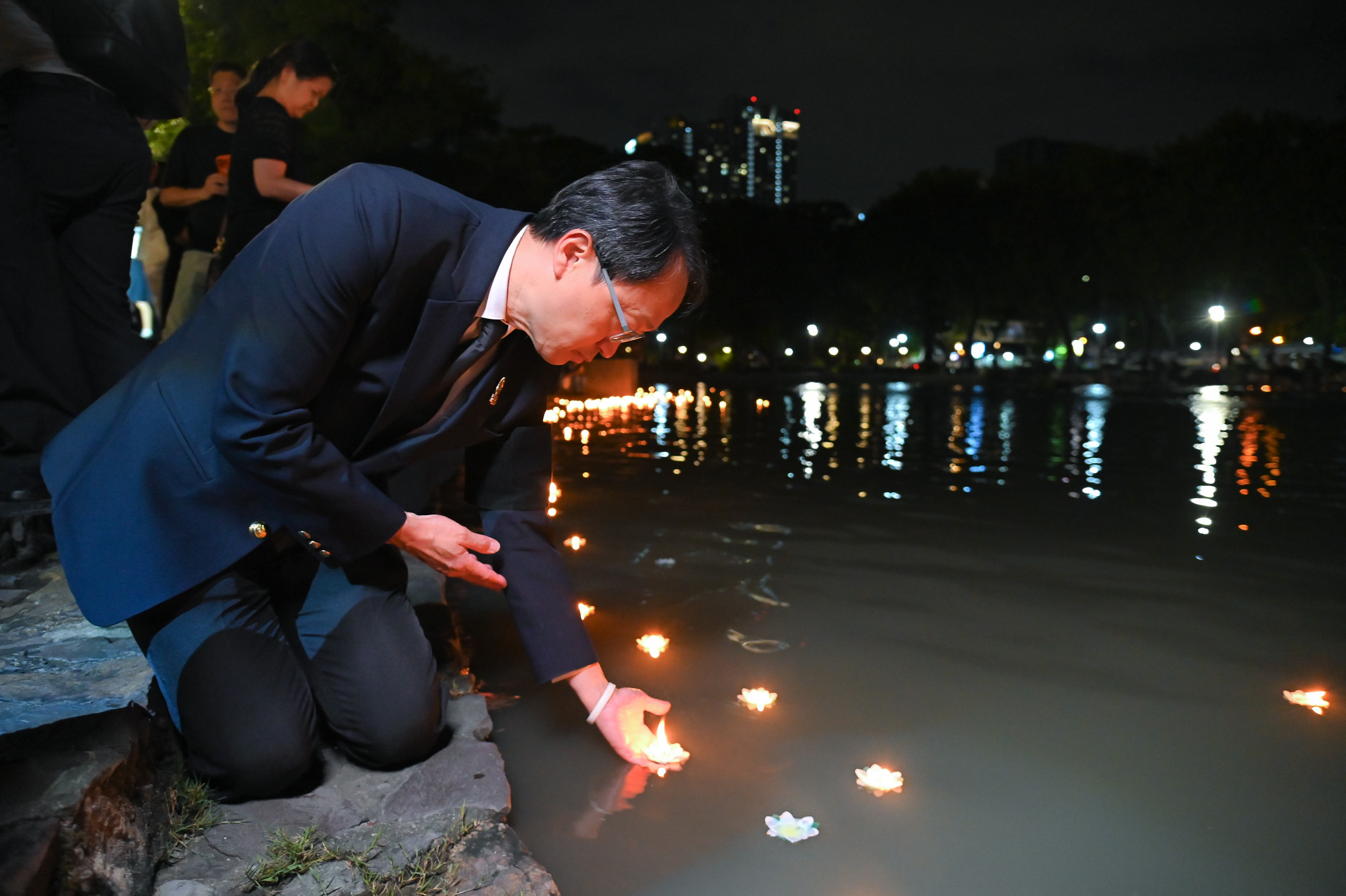 สำหรับบรรยากาศในงานลอยกระทงบริเวณสระน้ำจุฬาฯ ชาวจุฬาฯ และประชาชนทั่วไปที่มาร่วมงานได้ร่วมลอยกระทงด้วยกระทงเทียนที่จุฬาฯ จัดเตรียมไว้ ซึ่งสามารถนำกระทงเทียนมาหลอมใช้ใหม่ได้ เป็นการรักษาสิ่งแวดล้อม สร้างความยั่งยืน และสืบสานประเพณีอันดีงามไทย