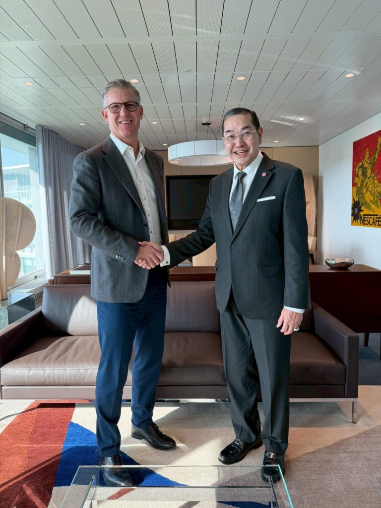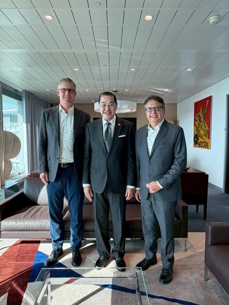 ศ. (พิเศษ) ดร.สุรเกียรติ์ เสถียรไทย นายกสภาจุฬาลงกรณ์มหาวิทยาลัยพบปะหารือกับ Mr. Philipp Navratil, New Global CEO of Nestle เกี่ยวกับความร่วมมือระหว่างจุฬาลงกรณ์มหาวิทยาลัยกับ Nestle โดยมี Mr. Remy Ejel, CEO Zone Asia, Oceania and Africa (AOA) ร่วมหารือด้วย เมื่อวันที่ 6 พฤศจิกายน 2568 ณ สำนักงานใหญ่เนสเล่ย์ เมือง Vevey ประเทศสวิตเซอร์แลนด์