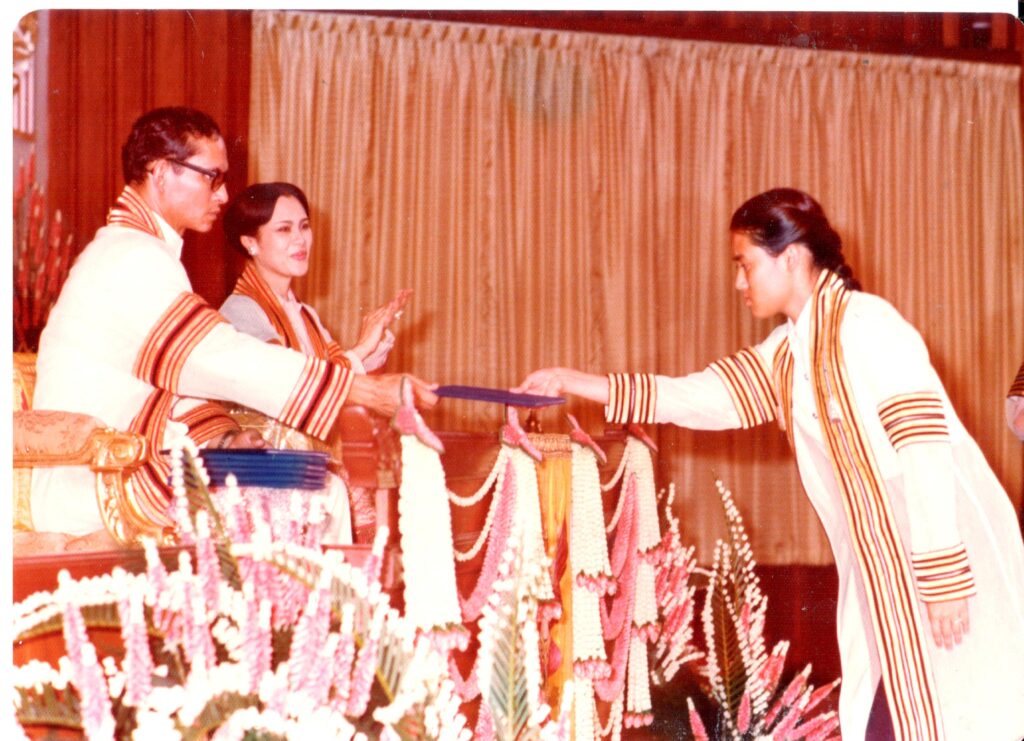ภาพความประทับใจในพิธีพระราชทานปริญญาบัตรจุฬาฯ ที่ชาวจุฬาฯ และพสกนิกรชาวไทยยังตราตรึงไว้ในความทรงจำไม่ลืมเลือนคือเมื่อครั้งสมเด็จพระกนิษฐาธิราชเจ้า กรมสมเด็จพระเทพรัตนราชสุดา ฯ สยามบรมราชกุมารีทรงสำเร็จการศึกษาจากจุฬาลงกรณ์มหาวิทยาลัยและเข้ารับพระราชทานปริญญาอักษรศาสตรบัณฑิต เกียรตินิยมอันดับ 1 เหรียญทอง เมื่อวันพฤหัสบดีที่ 14 กรกฎาคม 2520 สมเด็จพระนางเจ้าสิริกิติ์ พระบรมราชินีนาถ พระบรมราชชนนีพันปีหลวงได้ทรงฉายพระฉายาลักษณ์ร่วมกับสมเด็จพระกนิษฐาธิราชเจ้า กรมสมเด็จพระเทพรัตนราชสุดา ฯ สยามบรมราชกุมารี ที่บริเวณคณะอักษรศาสตร์ จุฬาฯ ด้วย