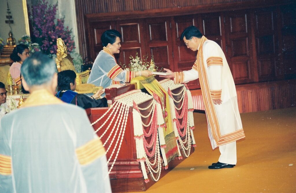 ในปี 2538 พระบาทสมเด็จพระมหาภูมิพลอดุลยเดชมหาราช บรมนาถบพิตร ทรงพระประชวรด้วยพระอาการเกี่ยวกับพระหทัย คณะแพทย์ได้กราบบังคมทูลพระกรุณาให้ทรงลดพระราชภารกิจที่ต้องใช้เวลาประทับอยู่เป็นเวลานาน ในปีนั้น สมเด็จพระนางเจ้าสิริกิติ์ พระบรมราชินีนาถ พระบรมราชชนนีพันปีหลวงได้เสด็จพระราชดำเนินแทนพระองค์ในการพระราชทานปริญญาบัตรแก่ผู้สำเร็จการศึกษาจากจุฬาฯ ปีการศึกษา 2537 ระหว่างวันที่ 13 – 15 กรกฎาคม 2538 โดยเสด็จพระราชดำเนินพร้อมด้วยสมเด็จพระกนิษฐาธิราชเจ้า กรมสมเด็จพระเทพรัตนราชสุดา ฯ สยามบรมราชกุมารี