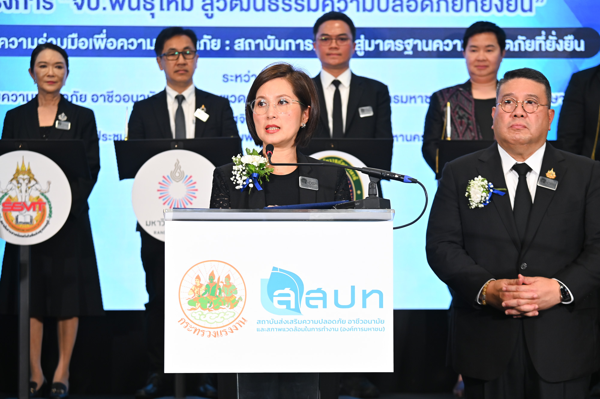 นางสาวตรีนุช เทียนทอง รัฐมนตรีว่าการกระทรวงแรงงาน กล่าวว่า “ความปลอดภัยในการทำงานเป็นประเด็นสำคัญที่ภาครัฐให้ความสำคัญอย่างต่อเนื่อง เนื่องจากอุบัติเหตุในการทำงานยังคงเกิดขึ้น โดยเฉพาะในกลุ่มแรงงานใหม่ที่มักขาดประสบการณ์ การพัฒนา “วัฒนธรรมความปลอดภัยตั้งแต่ในสถานศึกษา” จึงเป็นรากฐานสำคัญในการลดความเสี่ยงและสร้างคุณภาพแรงงานในระยะยาว และจะเป็นกำลังสำคัญในการเตรียมความพร้อมของคนรุ่นใหม่ให้มีความรู้และทักษะในการทำงานอย่างปลอดภัย เป็นระบบ และมีมาตรฐานเดียวกับภาคอุตสาหกรรม”