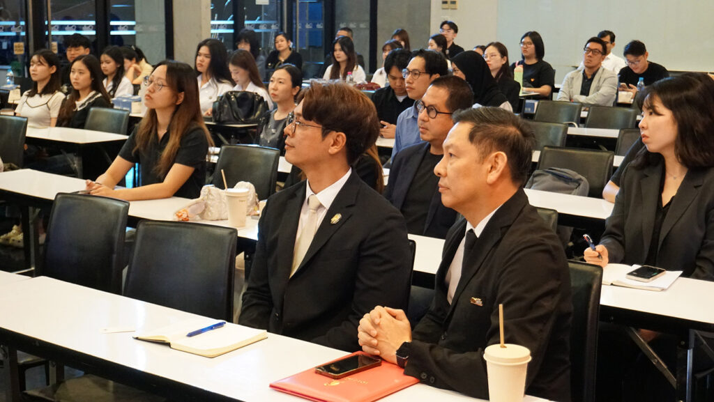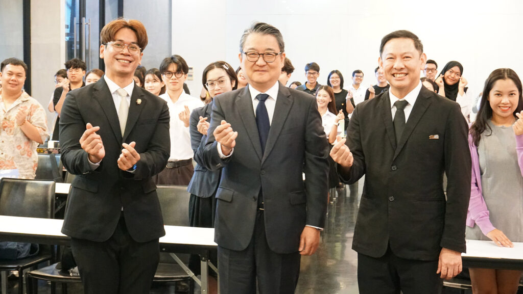 การบรรยายครั้งนี้ได้รับเกียรติจาก ฯพณฯ นายยงมิน พัค (H.E. Mr. Yongmin Park) เอกอัครราชทูตสาธารณรัฐเกาหลีประจำประเทศไทย ให้เกียรติเป็นวิทยากรถ่ายทอดความรู้และประสบการณ์ด้านการทูต ความร่วมมือระหว่างประเทศ และบทบาทของเกาหลีใต้ในบริบทอาเซียน โดยมี รศ.ดร.เกรียงไกร บุญเลิศอุทัย รองอธิการบดี กล่าวเปิดงานและให้การต้อนรับ