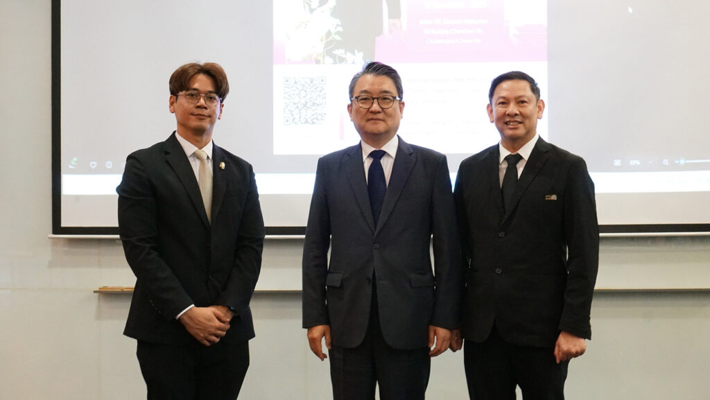 หลักสูตรสหสาขาวิชาเกาหลีศึกษาเพื่อการจัดการระหว่างประเทศ (KSIM) บัณฑิตวิทยาลัย จุฬาลงกรณ์มหาวิทยาลัย จัดสัมมนาบรรยายพิเศษ KSIM Special Lecture Seminar ในหัวข้อ “การเสริมสร้างความร่วมมือระหว่างเกาหลีและไทยในด้านการทูตสาธารณะ (Strengthening Korea–Thailand Cooperation in Public Diplomacy)” เมื่อวันเสาร์ที่ 15 พฤศจิกายน 2568 ณ ห้องเรียน 701 ชั้น 7 อาคารเฉลิมราชกุมารี 60 พรรษา จุฬาลงกรณ์มหาวิทยาลัย
