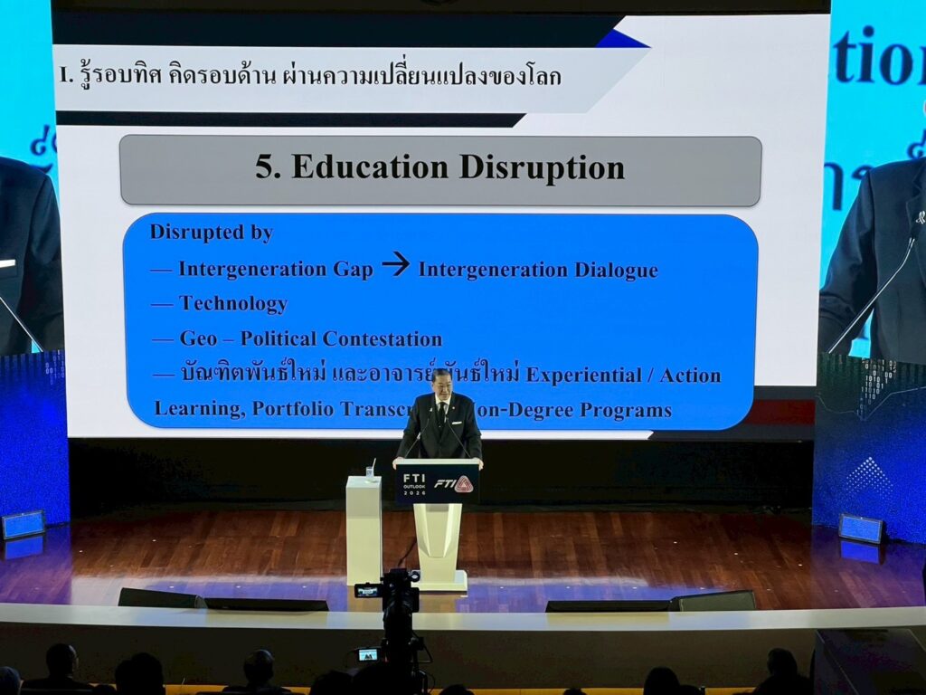ศ. (พิเศษ) ดร.สุรเกียรติ์ เสถียรไทย นายกสภาจุฬาลงกรณ์มหาวิทยาลัยบรรยายพิเศษเรื่อง “Navigating the Global Economic Landscape รู้รอบทิศ คิดรอบด้าน เศรษฐกิจโลกและเศรษฐกิจไทยในปี 2026” ในงานสัมมนาวิชาการประจำปี FTI Outlook 2026 “DECODING THAILAND’S INDUSTRY FOR THE UPCOMING FUTURE ถอดรหัสอุตสาหกรรมไทย อ่านเกมอนาคต” โดยมี ดร.เอกนิติ นิติทัณฑ์ประภาศ รองนายกรัฐมนตรีและรัฐมนตรีว่าการกระทรวงการคลังเป็นผู้กล่าวเปิดงานและปาฐกถาพิเศษเรื่อง “Policy Vision for Thailand’s Economic Transformation” นโยบายใหม่สู่การพลิกโฉมเศรษฐกิจไทย” กล่าวรายงานโดยนายเกรียงไกร เธียรนุกุล ประธานสภาอุตสาหกรรมแห่งประเทศไทย เมื่อวันพุธที่ 19 พฤศจิกายน 2568 ณ ห้อง Auditorium อาคาร 3 ชั้น 2 ปตท. สำนักงานใหญ่