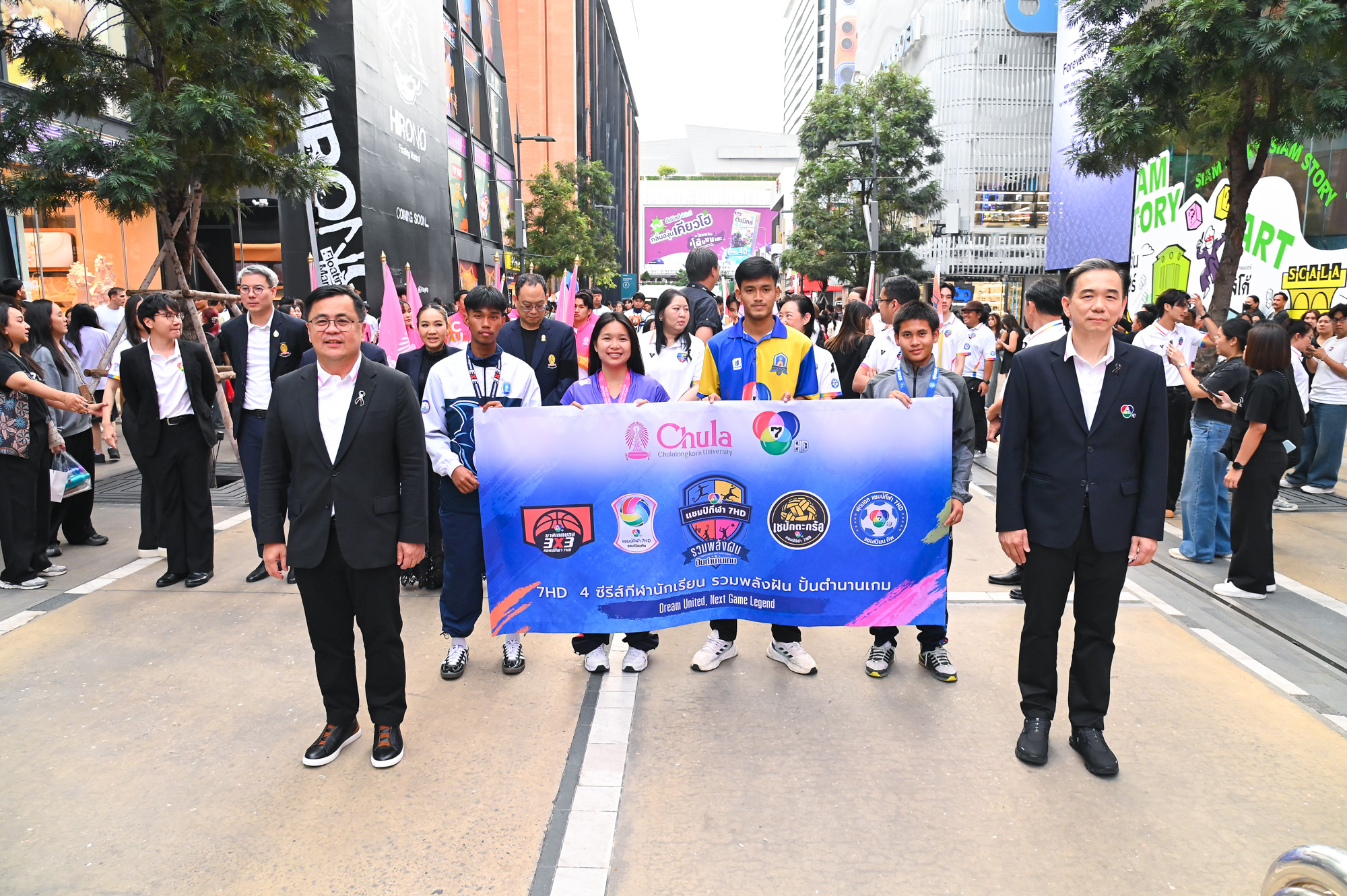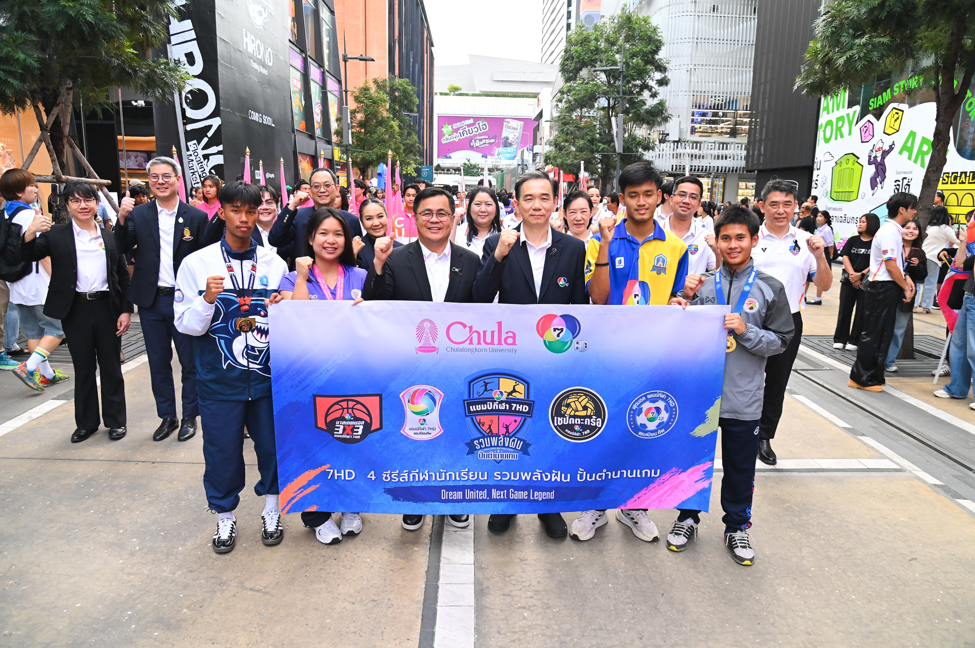 ช่อง 7HD ร่วมกับจุฬาลงกรณ์มหาวิทยาลัย จัดงาน “7HD 4 ซีรีส์กีฬานักเรียน รวมพลังฝัน ปั้นตำนานเกม” Dream United, Next Game Legend เมื่อวันศุกร์ที่ 21 พฤศจิกายน 2568 ณ ลานกิจกรรม Block I สยามสแควร์ เพื่อฉลองความสำเร็จของโปรเจกต์ 4 ซีรีส์กีฬานักเรียน ที่เป็นส่วนหนึ่งในการสานฝันเยาวชนทั่วประเทศ พร้อมผนึกกำลังพันธมิตร เชิดชูเกียรตินักเรียนนักกีฬามากความสามารถ โดยมีคุณพัฒนพงค์ หนูพันธ์ กรรมการผู้จัดการ ช่อง 7HD ศ.ดร.วิเลิศ ภูริวัชร อธิการบดีจุฬาฯ ร่วมในงานครั้งนี้ โดยจุฬาลงกรณ์มหาวิทยาลัยให้การสนับสนุนพื้นที่จัดการแข่งขันตลอดฤดูกาล พร้อมเปิดโอกาสด้านการศึกษาแก่นักเรียน นักกีฬาที่มีศักยภาพต่อยอดสู่ความเป็นเลิศด้านการศึกษาและการกีฬา ในงานมีผู้บริหารจากวงการและหน่วยงานสำคัญด้านกีฬาของประเทศ อาทิ กระทรวงการท่องเที่ยวและกีฬา กองทุนพัฒนาการกีฬาแห่งชาติ กรมพลศึกษา สมาคมกีฬาวอลเลย์บอลแห่งประเทศไทย สมาคมกีฬาตะกร้อแห่งประเทศไทย สมาคมกีฬาฟุตบอลแห่งประเทศไทย ในพระบรมราชูปถัมภ์ บริษัท ที แอนด์ บี มีเดีย โกลบอล (ประเทศไทย) จำกัด บริษัท ทรู คอร์ปอเรชั่น จำกัด (มหาชน) ร่วมแสดงความยินดี