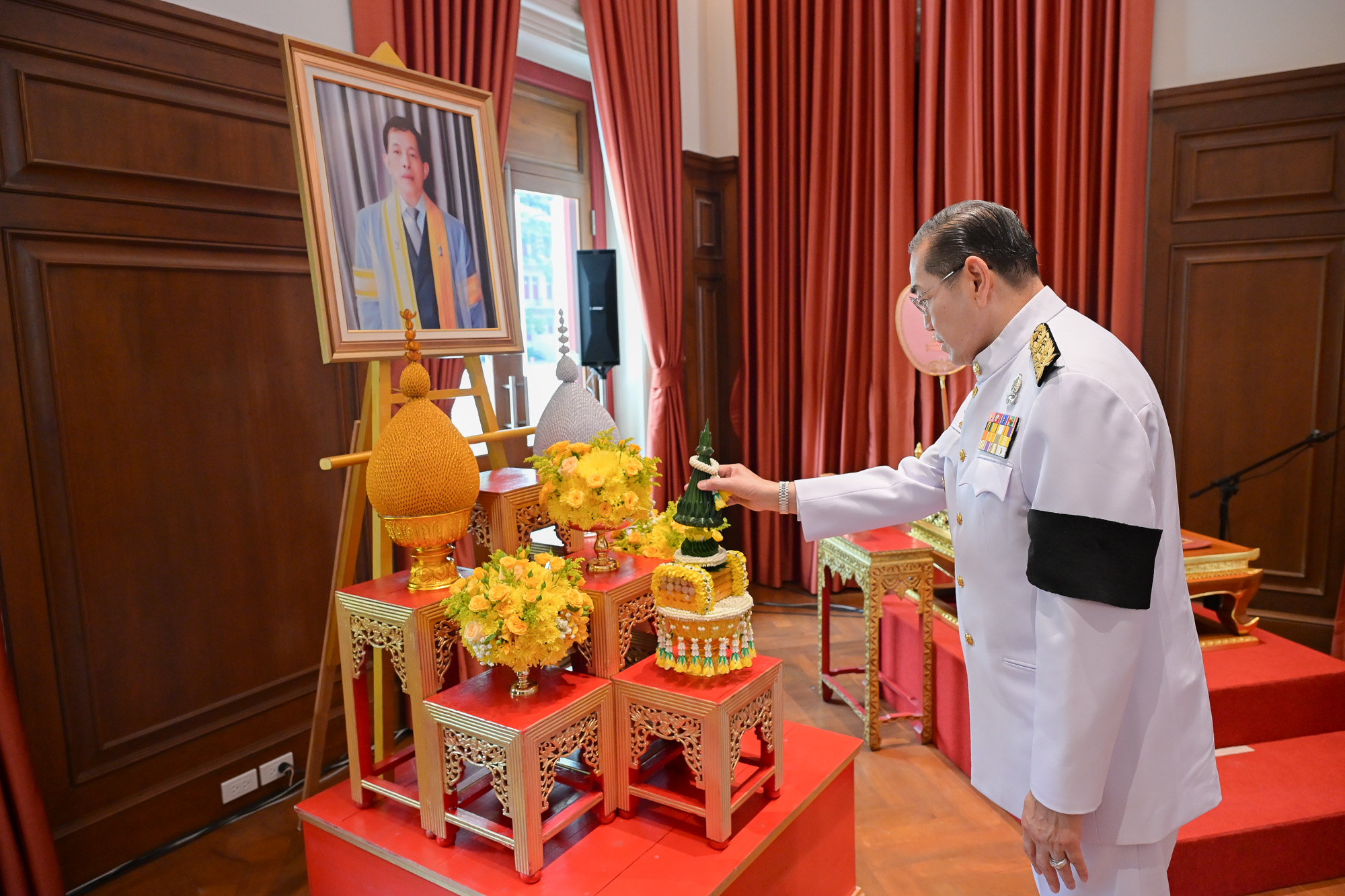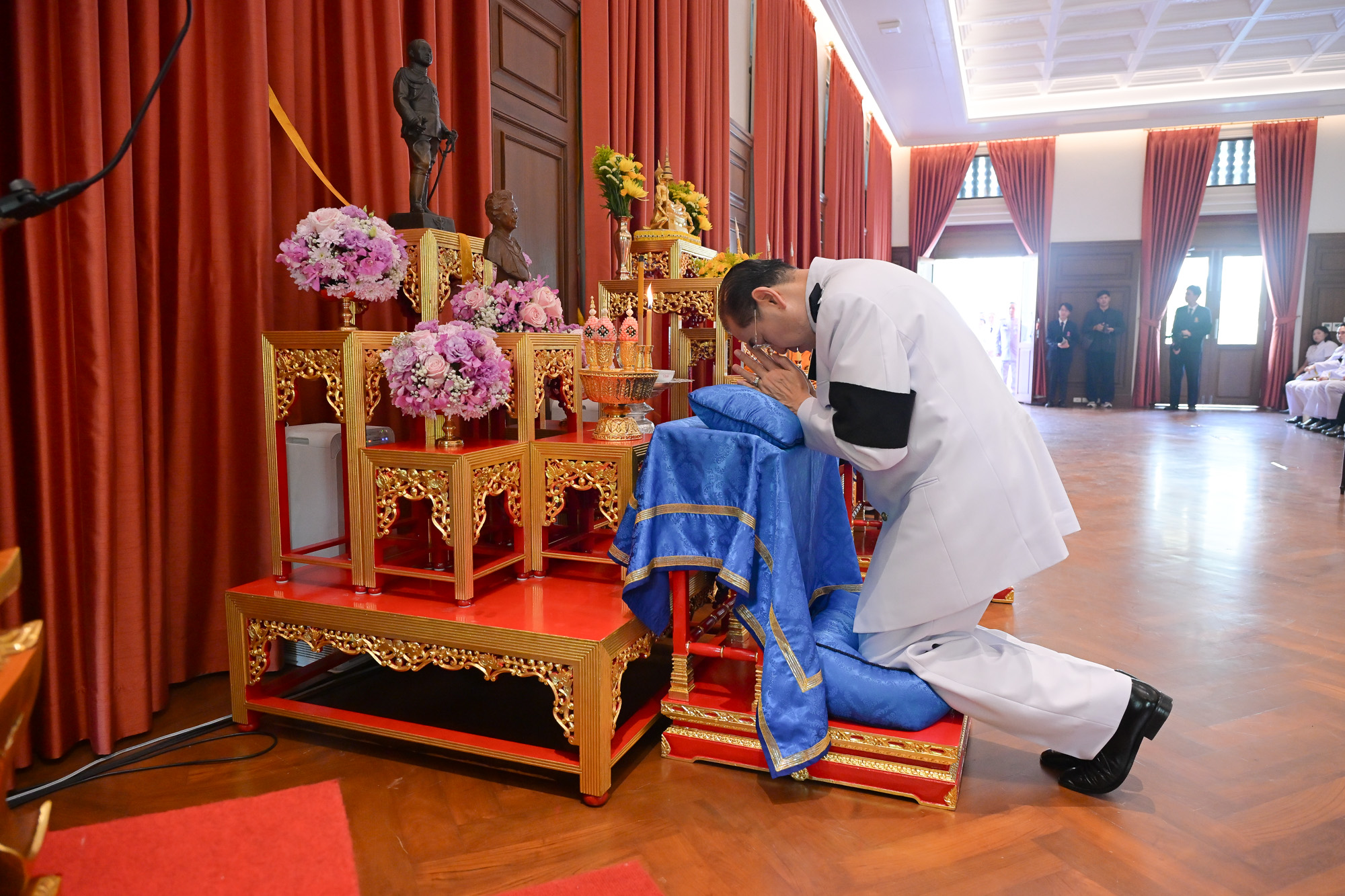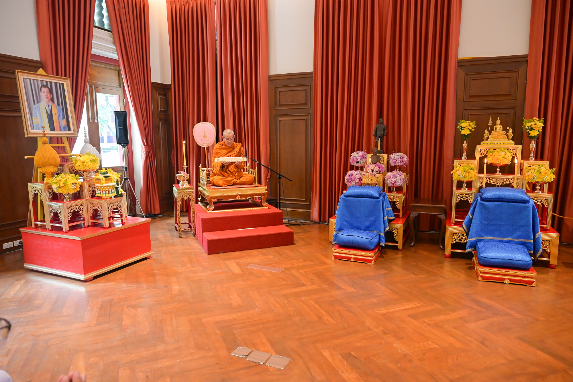 ในการนี้ ศ. (พิเศษ) ดร.สุรเกียรติ์ เสถียรไทย นายกสภามหาวิทยาลัย ประธานในพิธีบำเพ็ญกุศล จุดธูปเทียนบูชาพระรัตนตรัย จุดเครื่องทองน้อยถวายสักการะพระบรมรูปพระบาทสมเด็จพระปรเมนทรรามาธิบดีศรีสินทรมหาวชิราวุธ พระมงกุฎเกล้าเจ้าอยู่หัว พระมหาธีรราชเจ้า และพระรูปสมเด็จพระเจ้าบรมวงศ์เธอ เจ้าฟ้าเพชรรัตนราชสุดาฯ สิริโสภาพัณณวดี กรมพระนครปฐมบรมขัตติยานี มหาธีรราชธิดา และจุดเทียนดูหนังสือเทศน์และเครื่องบูชาธรรม พระราชาคณะแสดงพระธรรมเทศนา พระสงฆ์ 10 รูปสวดพระพุทธมนต์