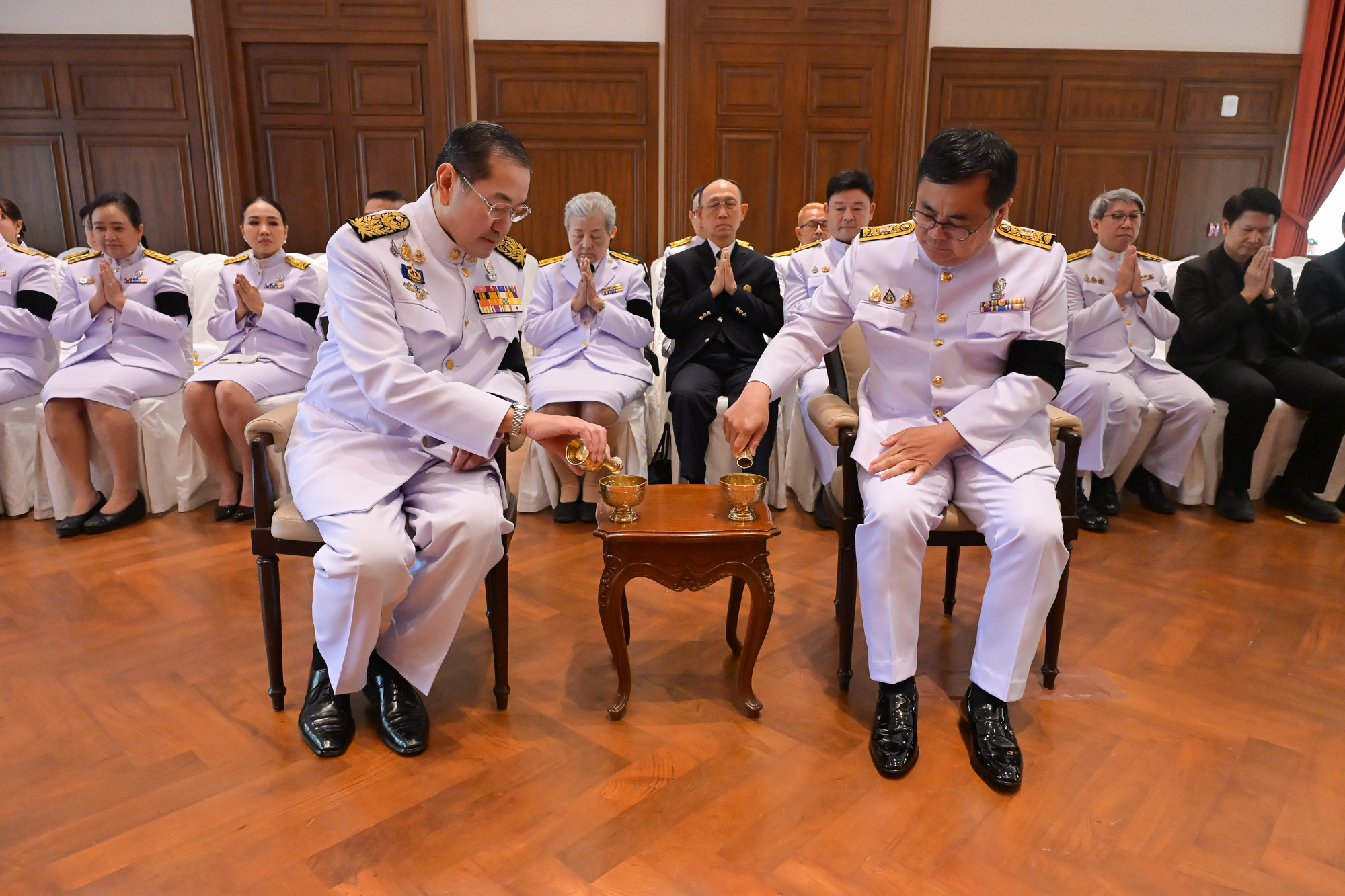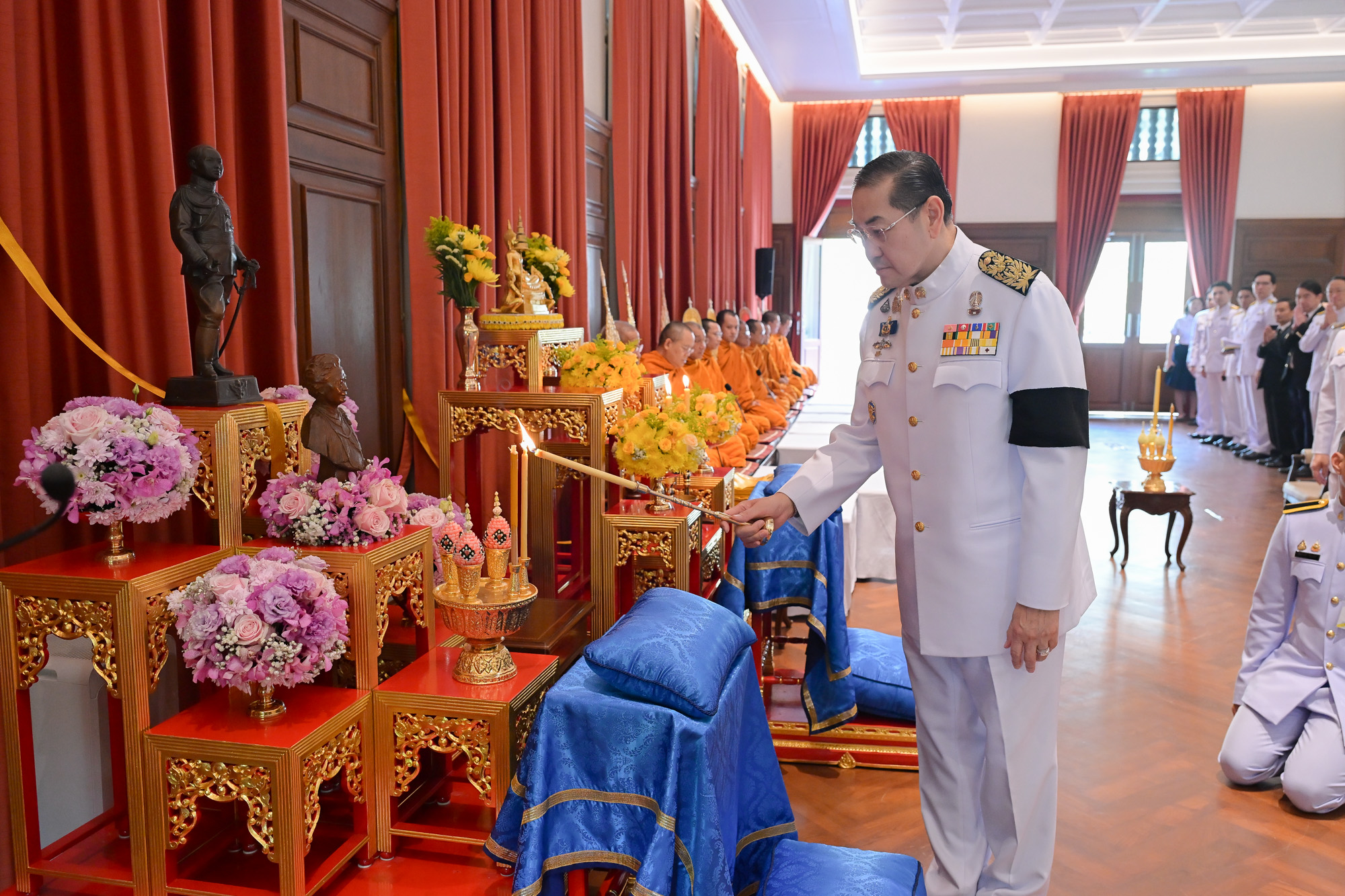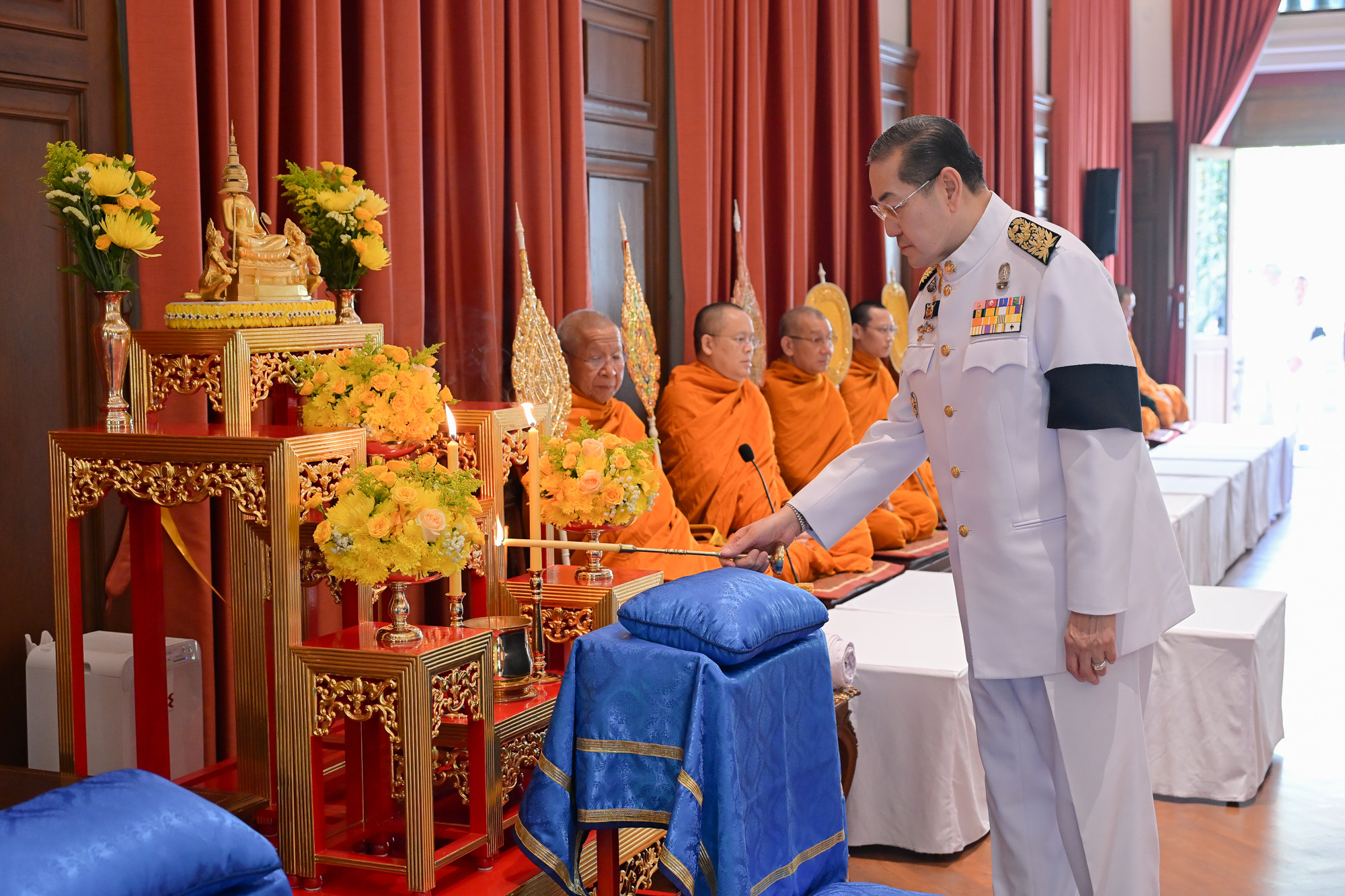 ในการนี้ ศ. (พิเศษ) ดร.สุรเกียรติ์ เสถียรไทย นายกสภามหาวิทยาลัย ประธานในพิธีบำเพ็ญกุศล จุดธูปเทียนบูชาพระรัตนตรัย จุดเครื่องทองน้อยถวายสักการะพระบรมรูปพระบาทสมเด็จพระปรเมนทรรามาธิบดีศรีสินทรมหาวชิราวุธ พระมงกุฎเกล้าเจ้าอยู่หัว พระมหาธีรราชเจ้า และพระรูปสมเด็จพระเจ้าบรมวงศ์เธอ เจ้าฟ้าเพชรรัตนราชสุดาฯ สิริโสภาพัณณวดี กรมพระนครปฐมบรมขัตติยานี มหาธีรราชธิดา และจุดเทียนดูหนังสือเทศน์และเครื่องบูชาธรรม พระราชาคณะแสดงพระธรรมเทศนา พระสงฆ์ 10 รูปสวดพระพุทธมนต์
