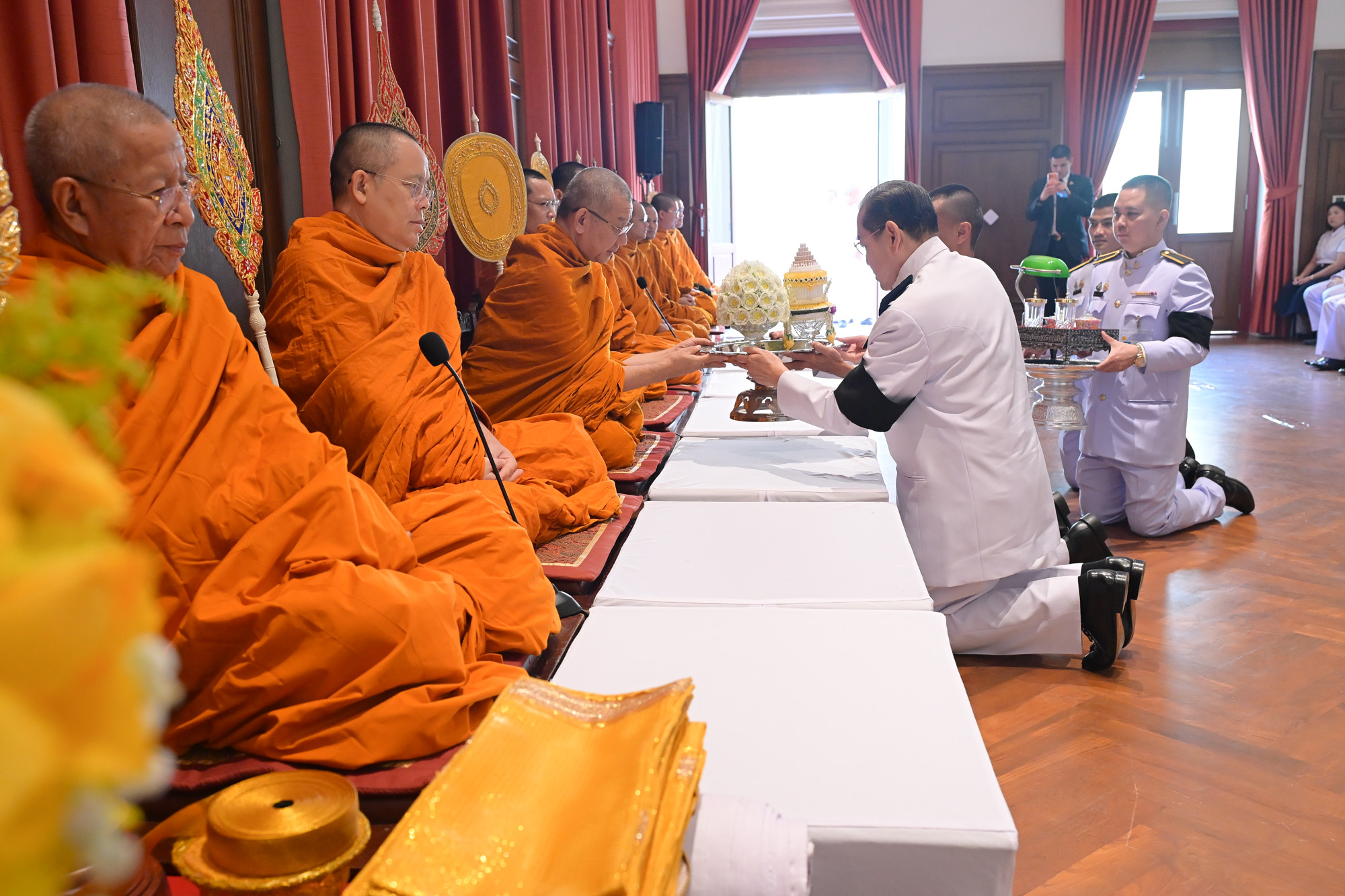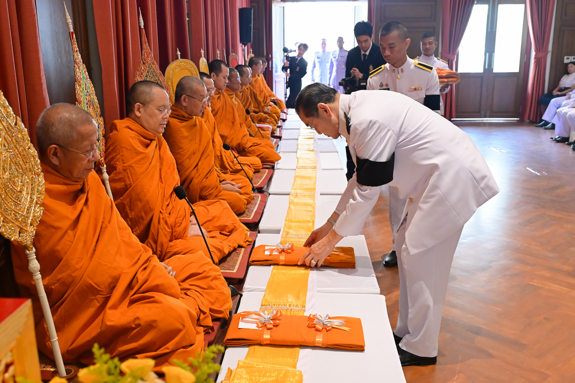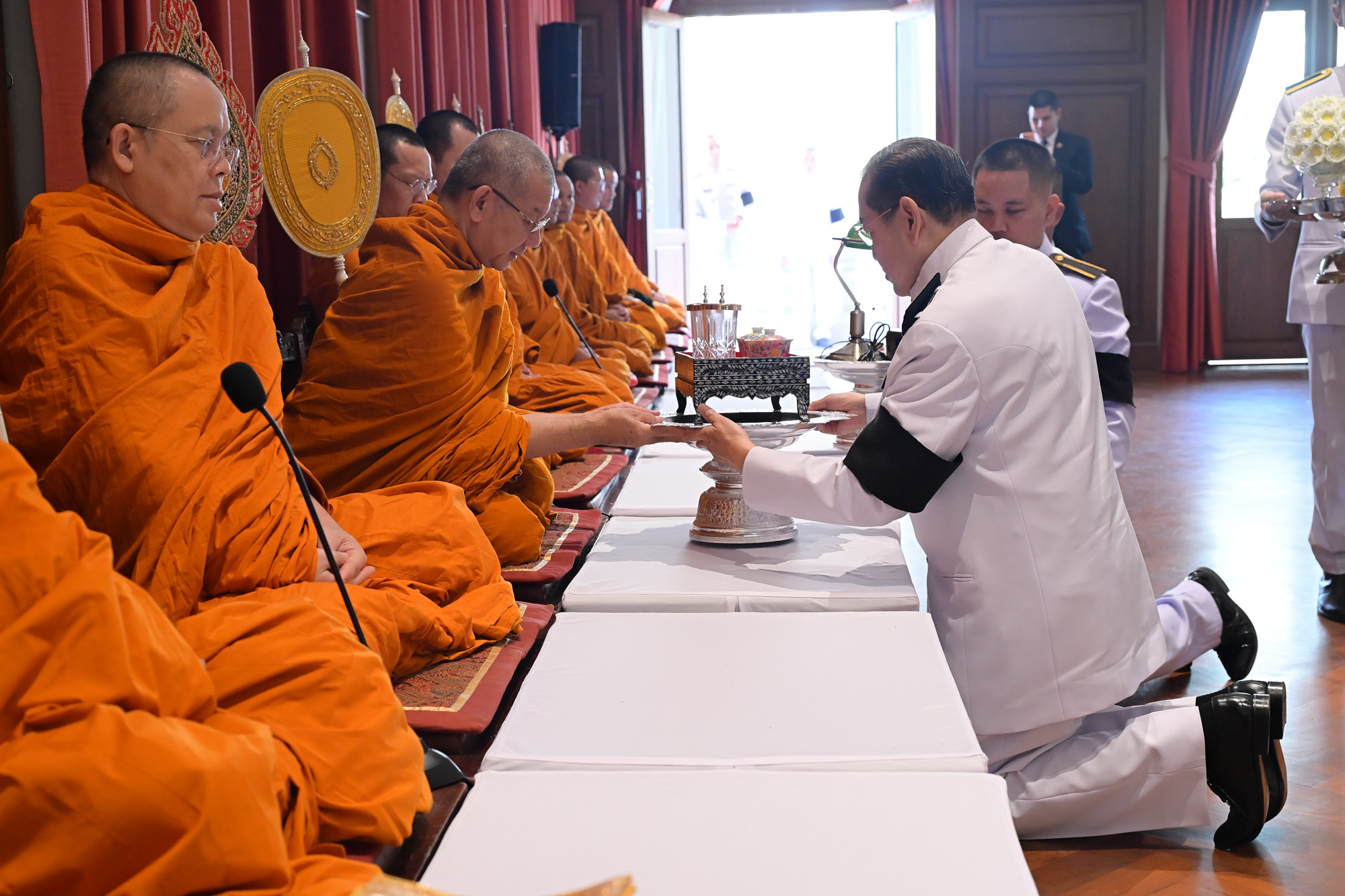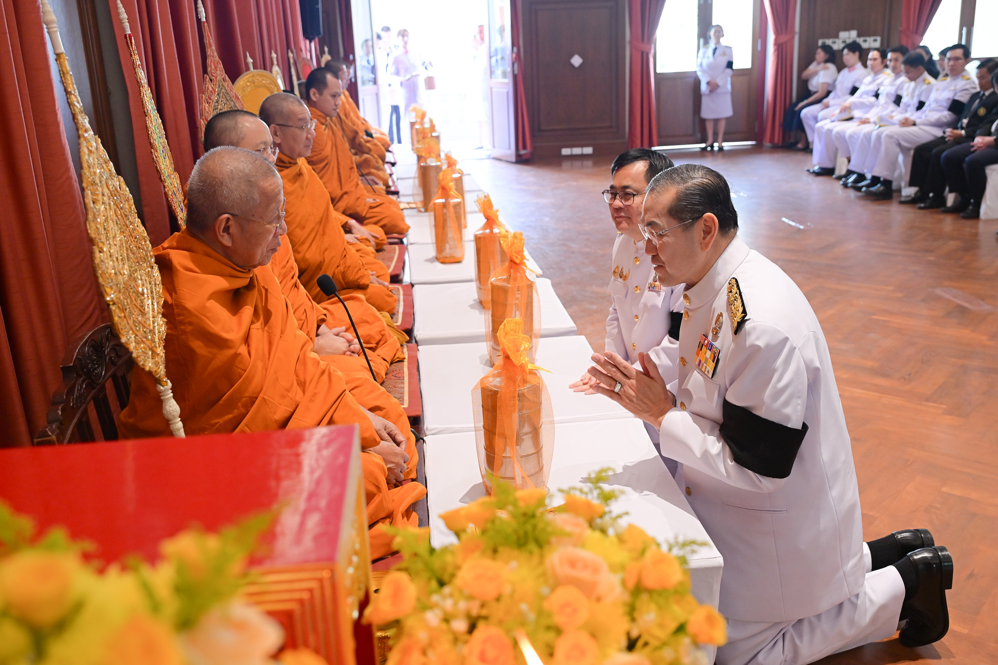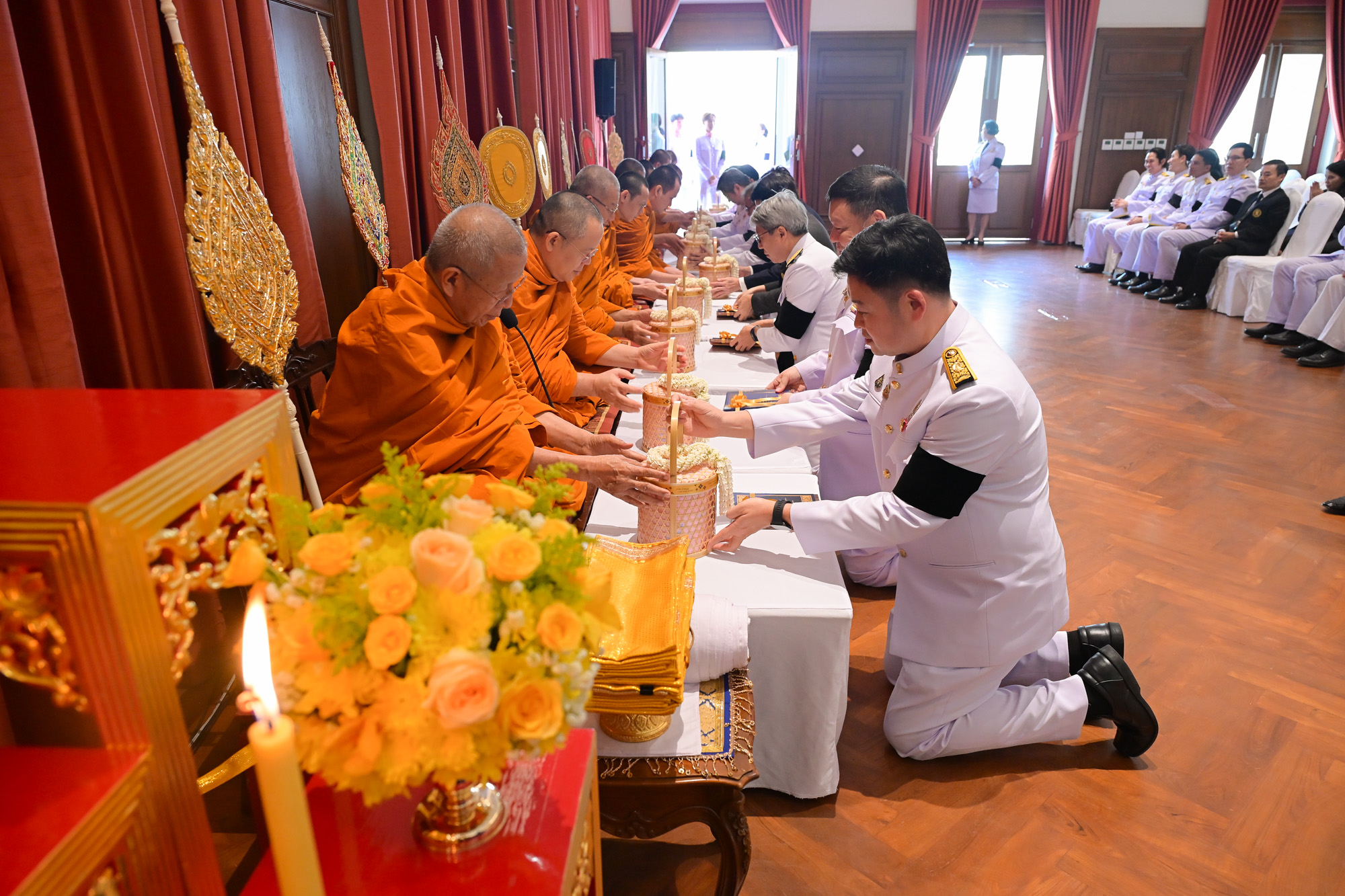 ในโอกาสนี้ นายกสภามหาวิทยาลัย อธิการบดี ผู้แทนกรรมการสภามหาวิทยาลัย ผู้แทนผู้บริหารมหาวิทยาลัย ผู้แทนคณาจารย์ บุคลากร นิสิตเก่า และผู้แทนนิสิตถวายภัตตาหารเพล ถวายจตุปัจจัยไทยธรรม จากนั้น นายกสภามหาวิทยาลัยทอดผ้าไตร พระสงฆ์ 10 รูปสดับปกรณ์พระบาทสมเด็จพระปรเมนทรรามาธิบดีศรีสินทรมหาวชิราวุธ พระมงกุฎเกล้าเจ้าอยู่หัว พระมหาธีรราชเจ้า และพระรูปสมเด็จพระเจ้าบรมวงศ์เธอ เจ้าฟ้าเพชรรัตนราชสุดาฯ สิริโสภาพัณณวดี กรมพระนครปฐมบรมขัตติยานี มหาธีรราชธิดา นายกสภามหาวิทยาลัยและอธิการบดีจุฬาฯ กรวดน้ำ พระสงฆ์อนุโมทนา