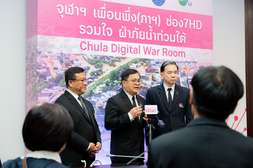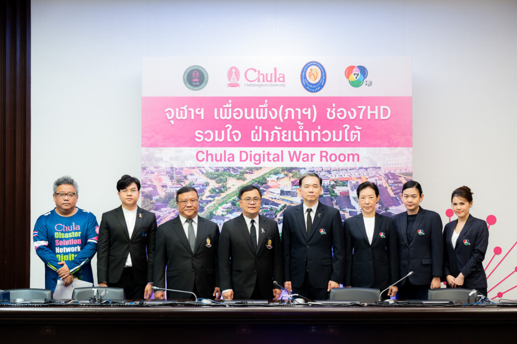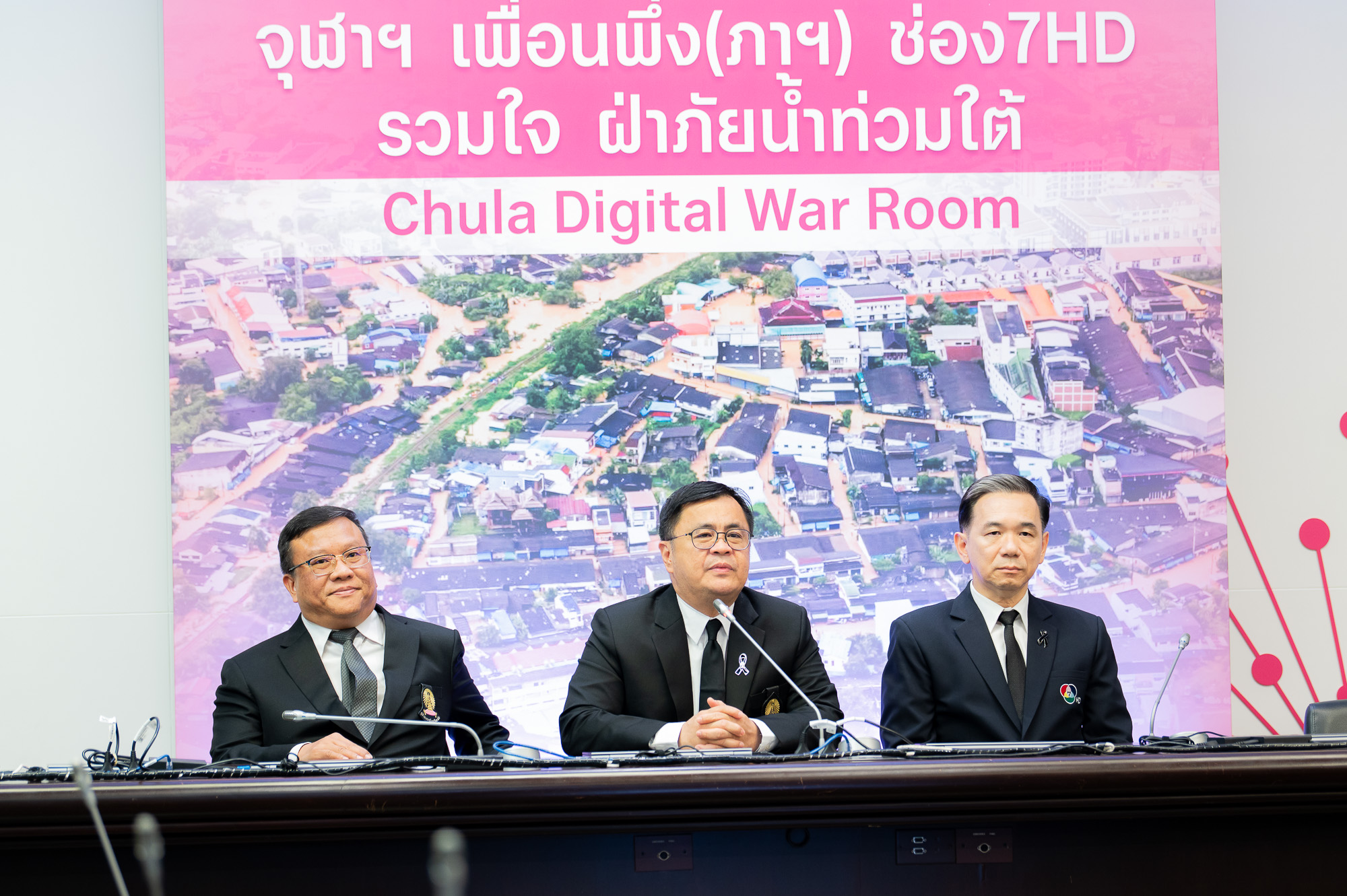 จุฬาลงกรณ์มหาวิทยาลัยโดยเครือข่ายจุฬาฯ ฝ่าพิบัติ ให้ความช่วยเหลือแก่ประชาชนพื้นที่ภาคใต้ที่ประสบอุทกภัยผ่าน Chula Digital War Room เพื่อสื่อสารรายงานสถานการณ์จริงกับประชาชนในพื้นที่ โดยมี ศ.ดร.วิเลิศ ภูริวัชร อธิการบดีจุฬาฯ เป็นผู้กล่าวเปิดงาน รศ.ดร.ศิริเดช สุชีวะ รองอธิการบดีจุฬาฯ และ คุณพัฒนพงค์ หนูพันธ์ กรรมการผู้จัดการช่อง 7HD ร่วมงานในครั้งนี้