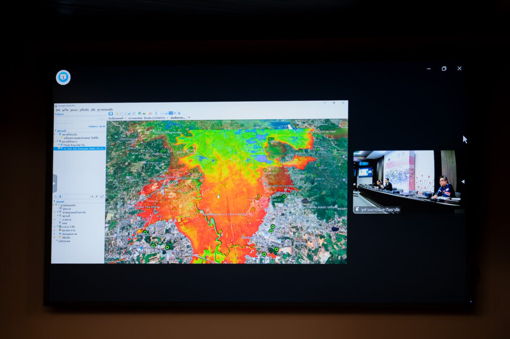 ศ.ดร.วิเลิศ ภูริวัชร อธิการบดีจุฬาฯ กล่าวว่า “สถานการณ์น้ำท่วมในปัจจุบันเป็นภาวะวิกฤตและไม่ปกติ การช่วยเหลือต้องมีระบบ Digital War Room ใช้เทคนิคภาพถ่ายและนวัตกรรมที่ทางจุฬาลงกรณ์มหาวิทยาลัยมีอยู่แล้วตรวจจับสถานการณ์ ทำให้สามารถระบุได้ว่าจุดไหนเป็นจุดปลอดภัย หรือจุดที่ต้องมีการเคลื่อนย้ายอย่างเร่งด่วน การใช้เทคนิคนี้ช่วยลดความโกลาหล และทำให้ทราบว่าพื้นที่ใดต้องการความช่วยเหลือด่วนที่สุด สถานการณ์ขณะนี้ต้องการมุมมองแบบ Bird’s-eye view คือการอยู่ข้างบนและมองภาพรวมทั้งหมดว่าน้ำไหลจากไหนไปไหน เพื่อสามารถวางแผนการจัดการและแก้ไขปัญหาได้”