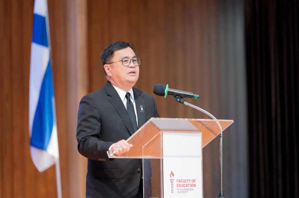 ศ.ดร.วิเลิศ ภูริวัชร อธิการบดีจุฬาฯ กล่าวว่า หัวข้อการบรรยายพิเศษครั้งนี้มีความสำคัญและทันต่อสถานการณ์อย่างยิ่ง ในยุคที่เทคโนโลยีเปลี่ยนแปลงรวดเร็ว สังคมมีความคาดหวังที่หลากหลาย เยาวชนของเรากำลังก้าวสู่โลกอนาคตที่ซับซ้อน ประสบการณ์ของประเทศฟินแลนด์จึงเป็นบทเรียนอันมีคุณค่า เป็นโอกาสในการเรียนรู้จากหนึ่งในผู้นำระดับโลกด้านการปฏิรูปการศึกษาและนวัตกรรมเพื่ออนาคต แนวคิดสำคัญจากการบรรยายครั้งนี้ยังสอดคล้องกับวิสัยทัศน์ของจุฬาลงกรณ์มหาวิทยาลัยและเป้าหมายด้านการศึกษาของประเทศไทย ได้แก่ ความเสมอภาคและสวัสดิภาพของผู้เรียน เพื่อให้เด็กทุกคนมีโอกาสเข้าถึงการเรียนรู้ที่ดีที่สุด การยกระดับวิชาชีพของครู ซึ่งเป็นหัวใจสำคัญของระบบโรงเรียนที่เข้มแข็งและยั่งยืน การรู้เท่าทันสื่อและเครื่องมือดิจิทัลในชั้นเรียน เพื่อให้ผู้เรียนก้าวทันโลกดิจิทัลด้วยทักษะคิดวิเคราะห์และความรับผิดชอบ และนโยบายการศึกษา หลักการเหล่านี้ยังสอดคล้องกับพันธกิจของจุฬาฯ ในการสร้างสภาพแวดล้อมทางการเรียนรู้ที่เปิดกว้าง รวมทั้งสะท้อนคุณค่าแห่งมิตรภาพและความร่วมมือในด้านการศึกษาอันยาวนานระหว่างฟินแลนด์และประเทศไทย