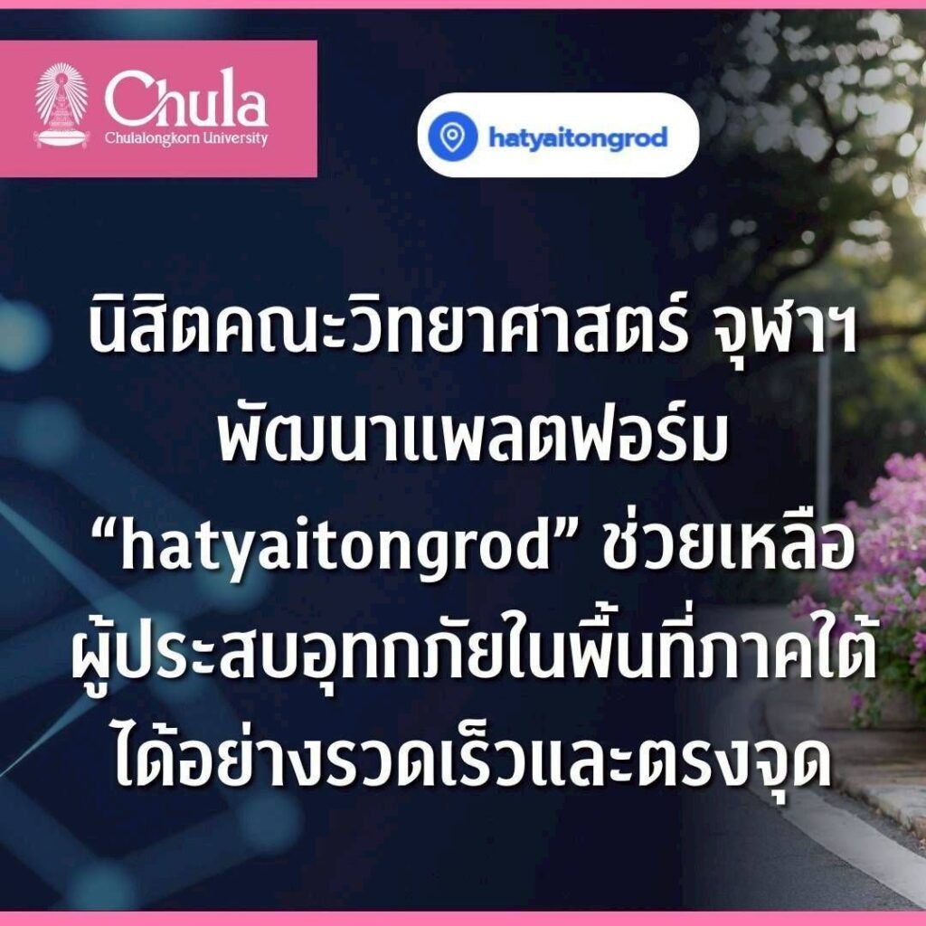 อุทกภัยในพื้นที่ภาคใต้ที่ส่งผลกระทบในวงกว้างอย่างรุนแรง ประชาชนจำนวนมากไม่สามารถใช้ชีวิตได้ตามปกติและต้องการความช่วยเหลืออย่างเร่งด่วน จากปัญหาที่วิกฤตและท้าทายนี้ นิสิตคณะวิทยาศาสตร์ จุฬาฯ ได้พัฒนาแพลตฟอร์มออนไลน์ “hatyaitongrod” เพื่อเป็นเครื่องมือปักหมุดขอความช่วยเหลือแบบเรียลไทม์ ช่วยให้หน่วยงานและจิตอาสาเข้าถึงผู้ประสบภัยได้อย่างรวดเร็ว แม่นยำ และมีประสิทธิภาพยิ่งขึ้น