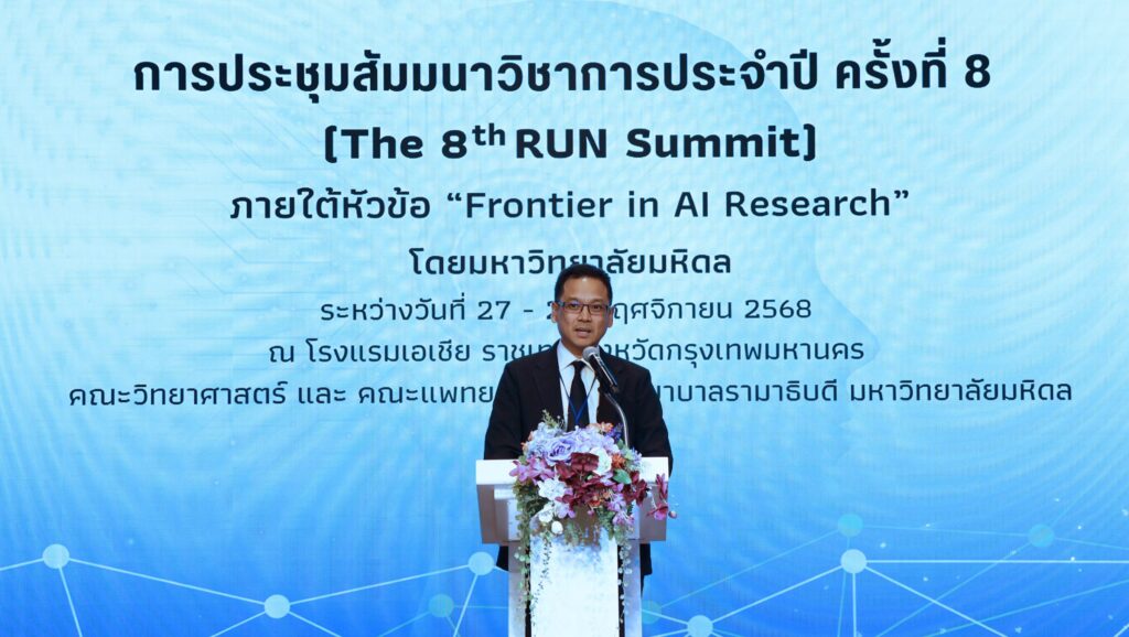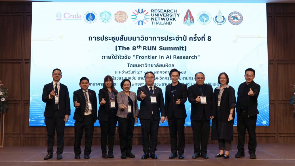 จุฬาลงกรณ์มหาวิทยาลัยร่วมการประชุมสัมมนาวิชาการประจำปี ครั้งที่ 8 (The 8th RUN Summit) ร่วมกับมหาวิทยาลัยในเครือข่ายพันธมิตรมหาวิทยาลัยเพื่อการวิจัย ภายใต้หัวข้อ “Frontier in AI Research” เพื่อเตรียมความพร้อมโครงการวิจัยในการขอรับการสนับสนุนจากแหล่งทุนด้านงานวิจัย เมื่อวันที่ 27 พฤศจิกายน 2568 ณ ห้องราชเทวี 2 โรงแรมเอเชีย โดยมี ศ.นพ.รังสรรค์ ฤกษ์นิมิต ผู้ช่วยอธิการบดี ด้านนวัตกรรม พร้อมด้วย ผศ.ดร.ณัฐพงศ์ พันธ์น้อย คณะสถาปัตยกรรมศาสตร์ รศ.พญ.โสฬพัทธ์ เหมรัญช์โรจน์ รศ.ดร.พญ.รุ่งฤดี ชัยธีรกิจ คณะแพทยศาสตร์ ศ.ดร.ศุภจิตรา ชัชวาล ศ.ดร.ศุภอรรจ ศิริกันทรมาศ รศ.ดร.จิรารัตน์ อนันตกูล ดร.ธนเทพ เหลืองทองคำ คณะวิทยาศาสตร์ และ ดร.สิตานัน ธิติประเสริฐ สถาบันวิจัยเทคโนโลยีชีวภาพและวิศวกรรมพันธุศาสตร์ เป็นตัวแทนเข้าร่วมประชุม
