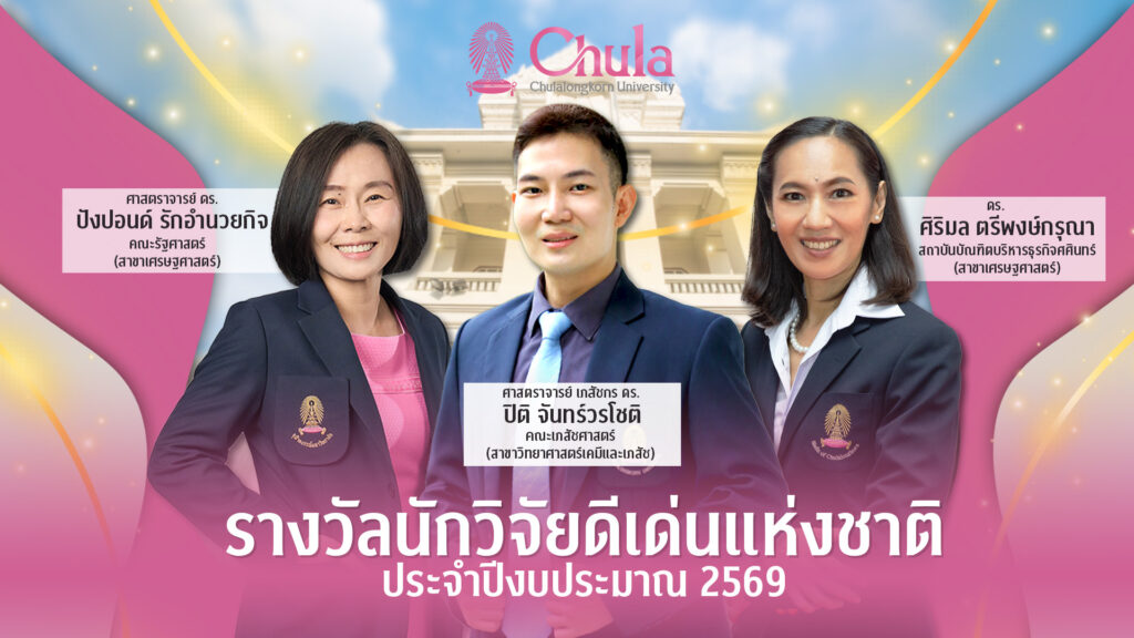 รางวัลนักวิจัยดีเด่นแห่งชาติ ประจำปี 2569 จุฬาลงกรณ์มหาวิทยาลัยได้รางวัลจำนวน 3 ท่านจาก 15 ท่าน ได้แก่