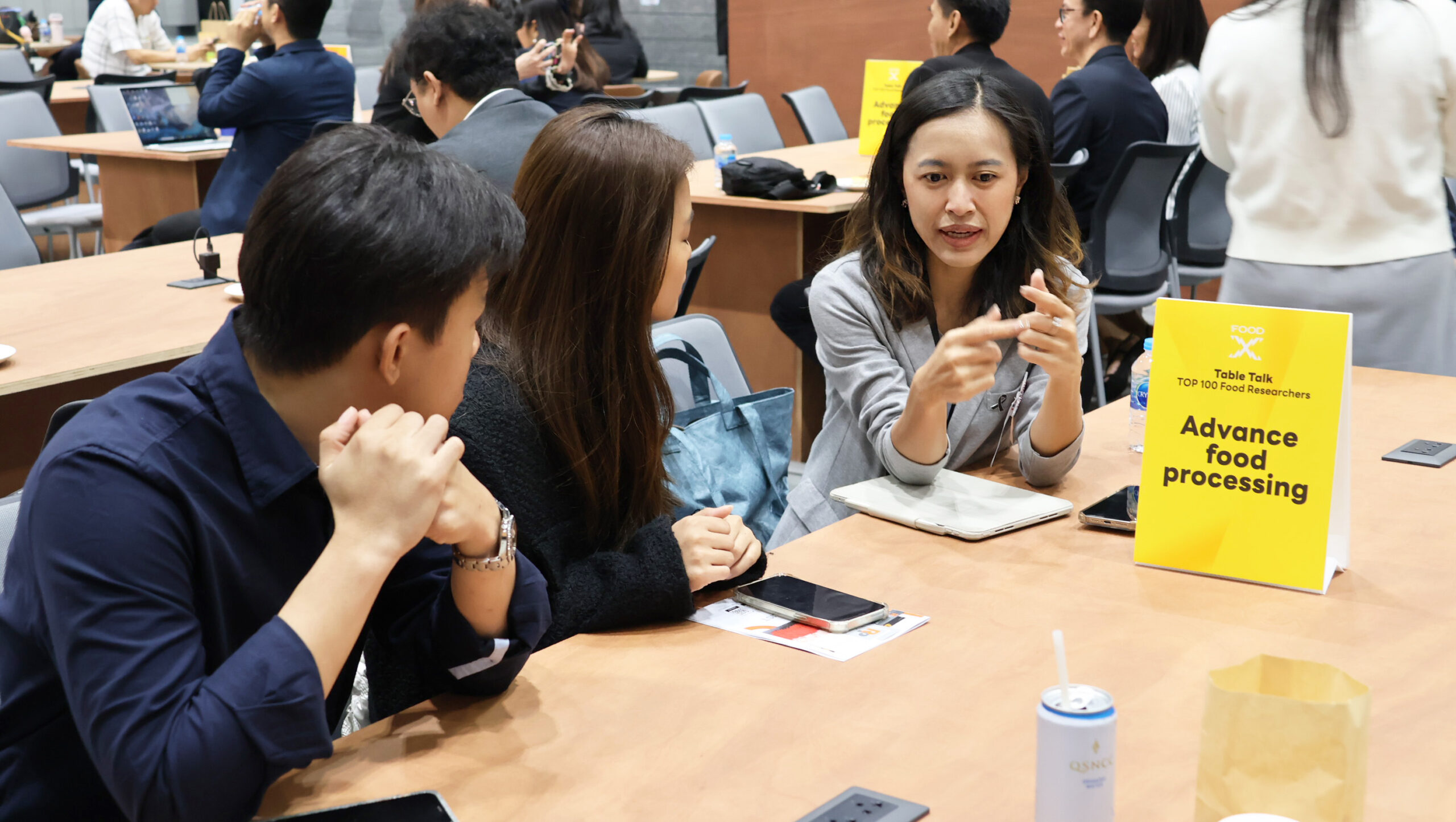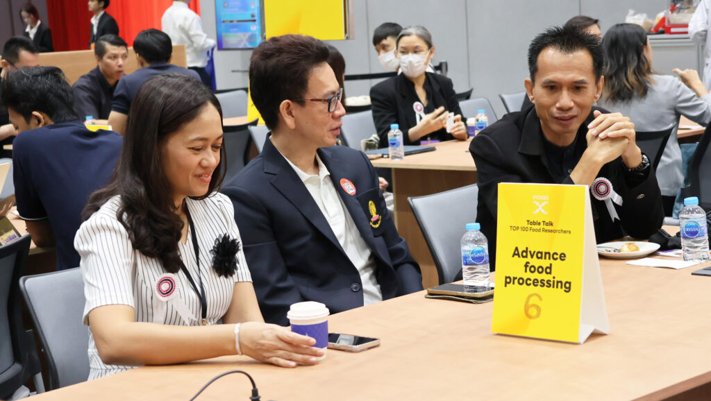 รศ.ดร.ชาลีดา บรมพิชัยชาติกุล ผู้อำนวยการสำนักงานเครือข่ายพันธมิตรมหาวิทยาลัยเพื่อการวิจัย เปิดเผยว่า ‘FoodX’ เป็นเวทีนำร่องให้กับนักวิจัยและผู้เชี่ยวชาญด้านห่วงโซ่อุปทานในอุตสาหกรรมอาหารได้มีโอกาสร่วมพูดคุยแลกเปลี่ยนองค์ความรู้ทางวิชาการ งานวิจัย และนวัตกรรม และผลักดันให้เกิดการประยุกต์ใช้งานวิจัยสู่อุตสาหกรรมอาหารของประเทศ ทั้งนี้ RUN ได้นำเสนอผลงานจากนักวิจัยผู้เชี่ยวชาญด้านอาหารที่มีประสบการณ์และความรู้เชิงลึกในการพัฒนาเทคโนโลยี นวัตกรรมการผลิต และการแปรรูปอาหาร โดยแบ่งออกเป็น 6 กลุ่มงานวิจัย ได้แก่ ‘การแปรรูปอาหารขั้นสูง’ การประมวลผลและเทคโนโลยีการแปรรูปอาหารแบบใหม่ ที่ช่วยรักษา ลดการสูญเสียคุณภาพอาหาร และยืดอายุการเก็บรักษา ‘การผลิตอาหารฟังก์ชั่นและส่วนประกอบอาหาร’ ออกแบบและผลิตผลิตภัณฑ์ฟังก์ชั่น ส่วนประกอบอาหาร และสารออกฤทธิ์ทางชีวภาพที่ส่งผลดีต่อร่างกาย ‘การออกแบบเฉพาะบุคคล’ ผลิตอาหารให้เหมาะสมกับความต้องการเฉพาะบุคคลหรือตามพฤติกรรมการใช้ชีวิตของผู้บริโภค ‘บรรจุภัณฑ์อาหารฟังก์ชั่น’ บรรจุภัณฑ์อัฉริยะที่รักษาคุณภาพของอาหาร หรือแสดงสัญลักษณ์บ่งชี้ถึงความพร้อมในการรับประทานหรือบ่งบอกการเน่าเสียของอาหาร ‘สื่อสร้างสรรค์เพื่อเพิ่มมูลค่าอาหาร’ ส่งเสริม Soft Power ด้านอาหาร และ ‘โปรตีนทางเลือก’ การวิจัยด้านผลิตแหล่งโปรตีนทางเลือกที่ปลอดภัยและขยายสู่กำลังการผลิตในระดับอุตสาหกรรม