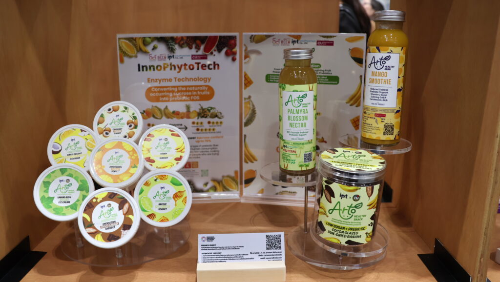 เครือข่ายพันธมิตรมหาวิทยาลัยเพื่อการวิจัยรวมกลุ่มกับ 8 มหาวิทยาลัยในเครือข่ายจัดนิทรรศการในหัวข้อ “100 นักวิจัยและผู้เชี่ยวชาญด้านอาหาร (RUN TOP100)” นำเสนออาจารย์และนักวิจัยที่มีความเชี่ยวชาญในด้านงานวิจัยอาหารและนำเสนอผลงานทางด้านนวัตกรรมอาหาร โดยจุฬาลงกรณ์มหาวิทยาลัยร่วมนำเสนอผลงานวิจัยในนิทรรศการจำนวน 2 ผลงาน ได้แก่ “Sweet Revolution- ไอศกรีมเชิงหน้าที่จากผลไม้ ที่เปลี่ยนน้ำตาลให้กลายเป็นพรีไบโอติก” โดย ศ.ดร.ศุภอรรจ ศิริกันทรมาศ จากคณะวิทยาศาสตร์ และ “การออกแบบเมนูอาหารสุขภาพที่เชื่อมโยงวิทยวัฒนธรรมเพื่อสร้างนวัตกรรมกินดี (GIN-D)” โดย ผศ.ดร.ฐิติรัตน์ ปั้นบำรุงกิจ จากคณะอักษรศาสตร์