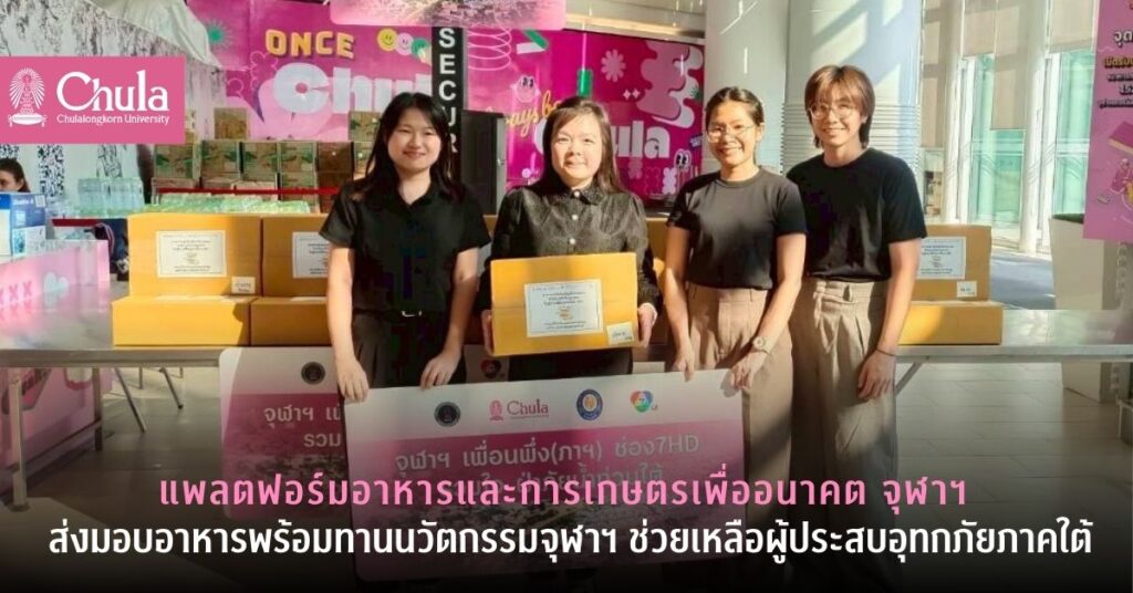 แพลตฟอร์มอาหารและการเกษตรเพื่ออนาคต จุฬาฯ ส่งมอบอาหารพร้อมทานจากนวัตกรรมจุฬาฯ ช่วยเหลือผู้ประสบอุทกภัยภาคใต้