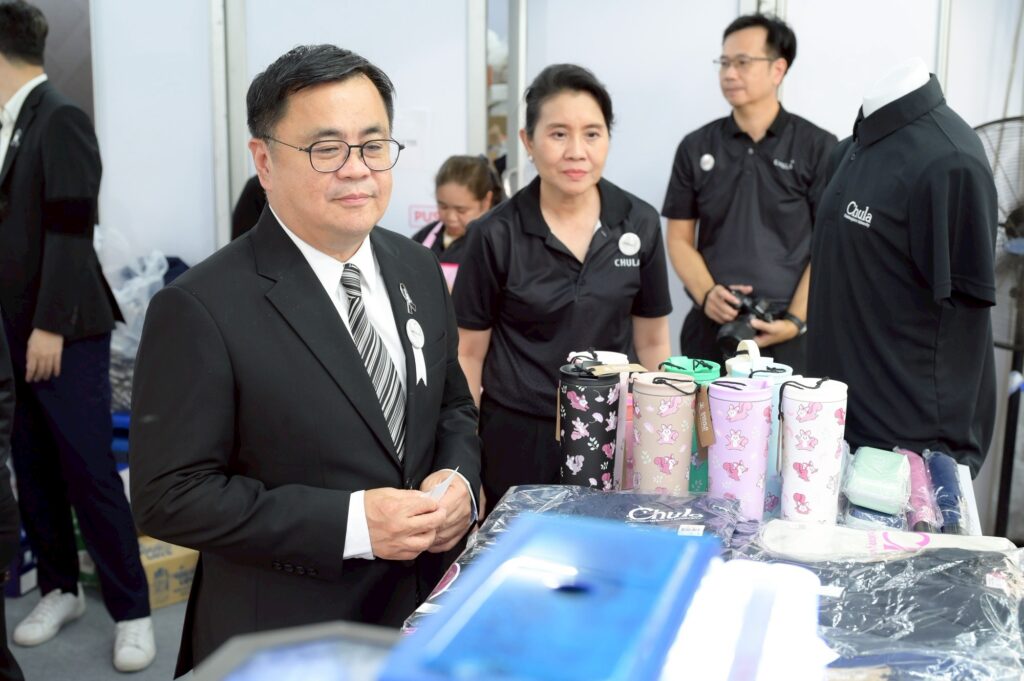 ศ.ดร.วิเลิศ ภูริวัชร อธิการบดีจุฬาฯ กล่าวว่า “การออกร้านของจุฬาฯ ในงานกาชาดครั้งนี้เป็นการรวมพลังของชาวจุฬาฯ ทั้งคณาจารย์ บุคลากร นิสิตจุฬาฯ และนิสิตเก่า นอกจากความสนุกสนานและการทำบุญแล้ว ยังเน้นเรื่องของความสามัคคี บูธของจุฬาฯ มีการสอยดาวชิงรางวัลต่าง ๆ การแสดงจากวง CU Band และนิสิตจุฬาคทากรได้มาร่วมกิจกรรมจำหน่ายสลากกาชาดจุฬาฯ ด้วย ขอเชิญชวนมาร่วมงานกาชาดปี 2568 และแวะชมร้านกาชาดจุฬาฯ”
