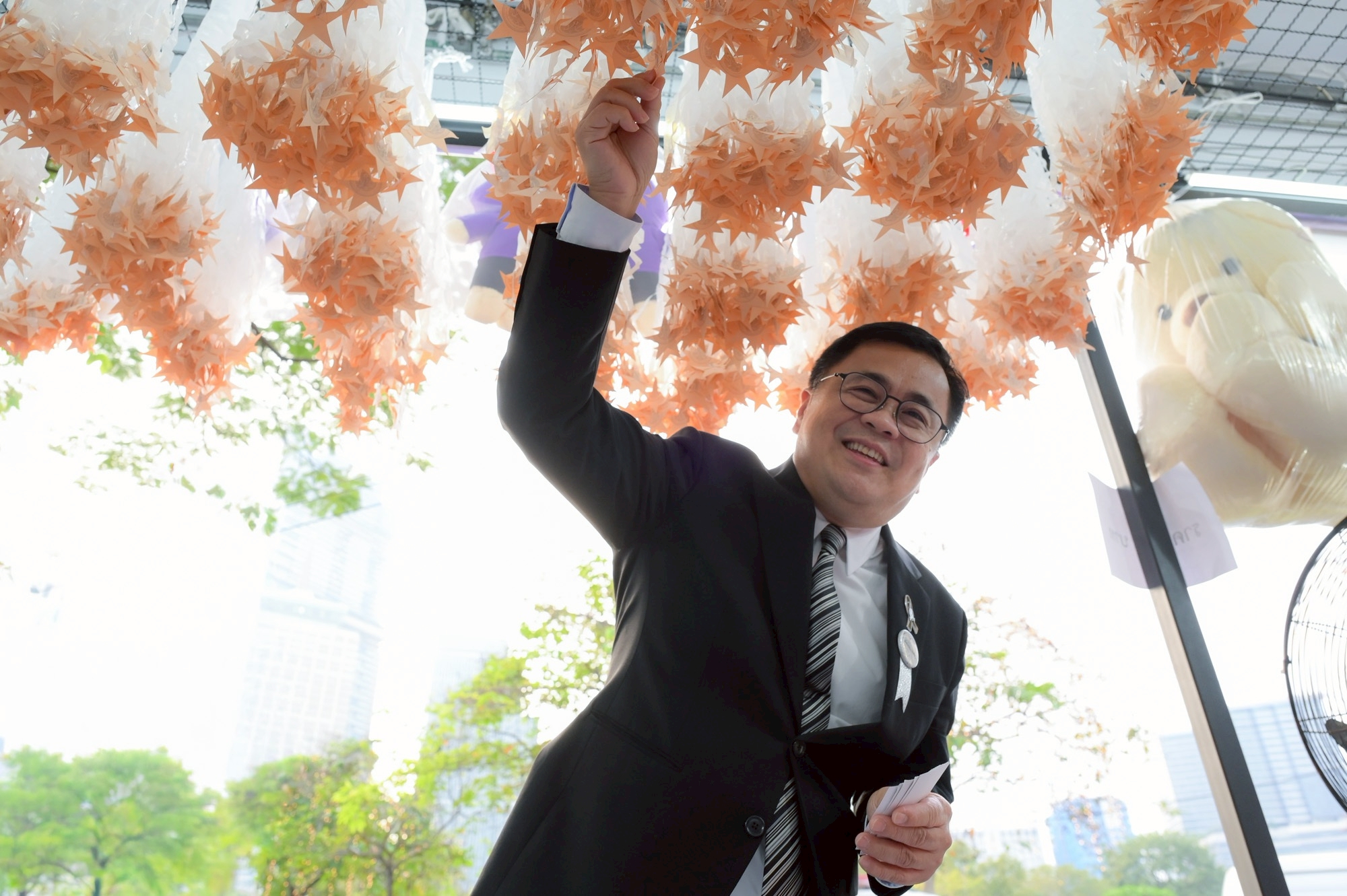 นิติพัทธ์ พสุเกษมพงศ์ นิสิตชั้นปีที่ 1 คณะพาณิชยศาสตร์และการบัญชี จุฬาฯ และจุฬาคทากร รุ่นที่ 18 กล่าวว่า “มาร่วมงานกาชาดเป็นประจำ สำหรับงานกาชาดปีนี้ได้ทำหน้าที่เชิญชวนร่วมสอยดาวที่ร้านกาชาดจุฬาฯ อยากเชิญชวนให้มาที่ร้านกาชาดจุฬาฯ ผู้เข้าร่วมงานนอกจากจะได้รับรางวัลจากการสอยดาวแล้ว ยังได้รอยยิ้ม การได้กินอาหารอร่อย ๆ และได้เจอพวกเราด้วย”