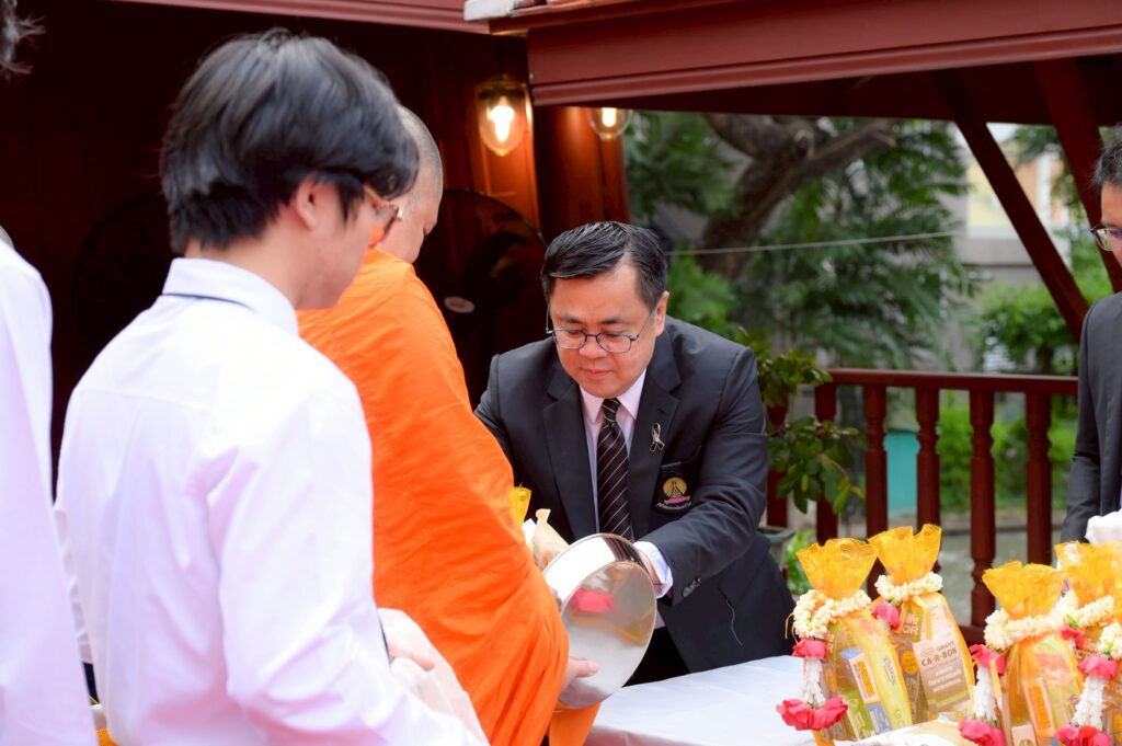ศ.ดร.วิเลิศ ภูริวัชร อธิการบดีจุฬาฯ พร้อมด้วยผู้บริหารมหาวิทยาลัย คณาจารย์ บุคลากร และนิสิตจุฬาฯ ร่วมตักบาตรพระสงฆ์จำนวน 10 รูปจากวัดสระเกศ โดยได้รับความเมตตาจากพระกาญจน์ สุญาณิกโพธิ ป.ธ.9 วัดสระเกศราชวรมหาวิหารเป็นประธานสงฆ์