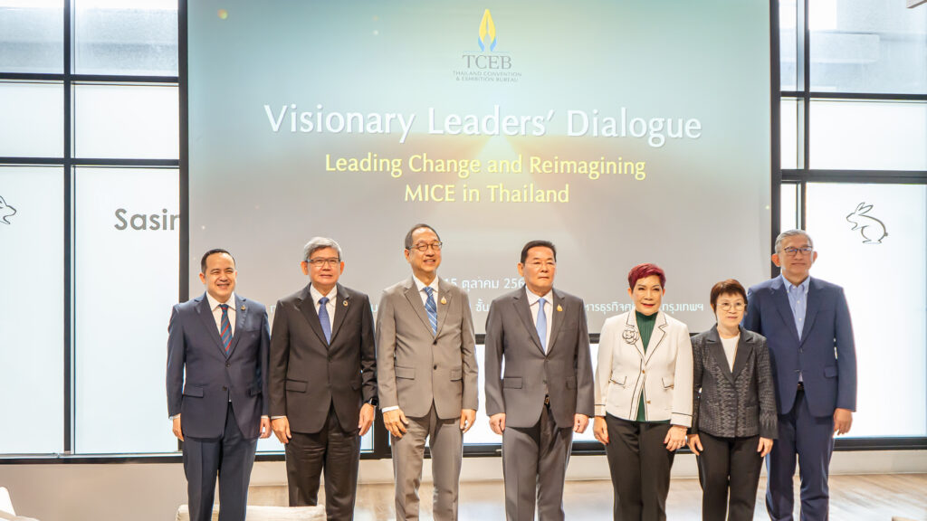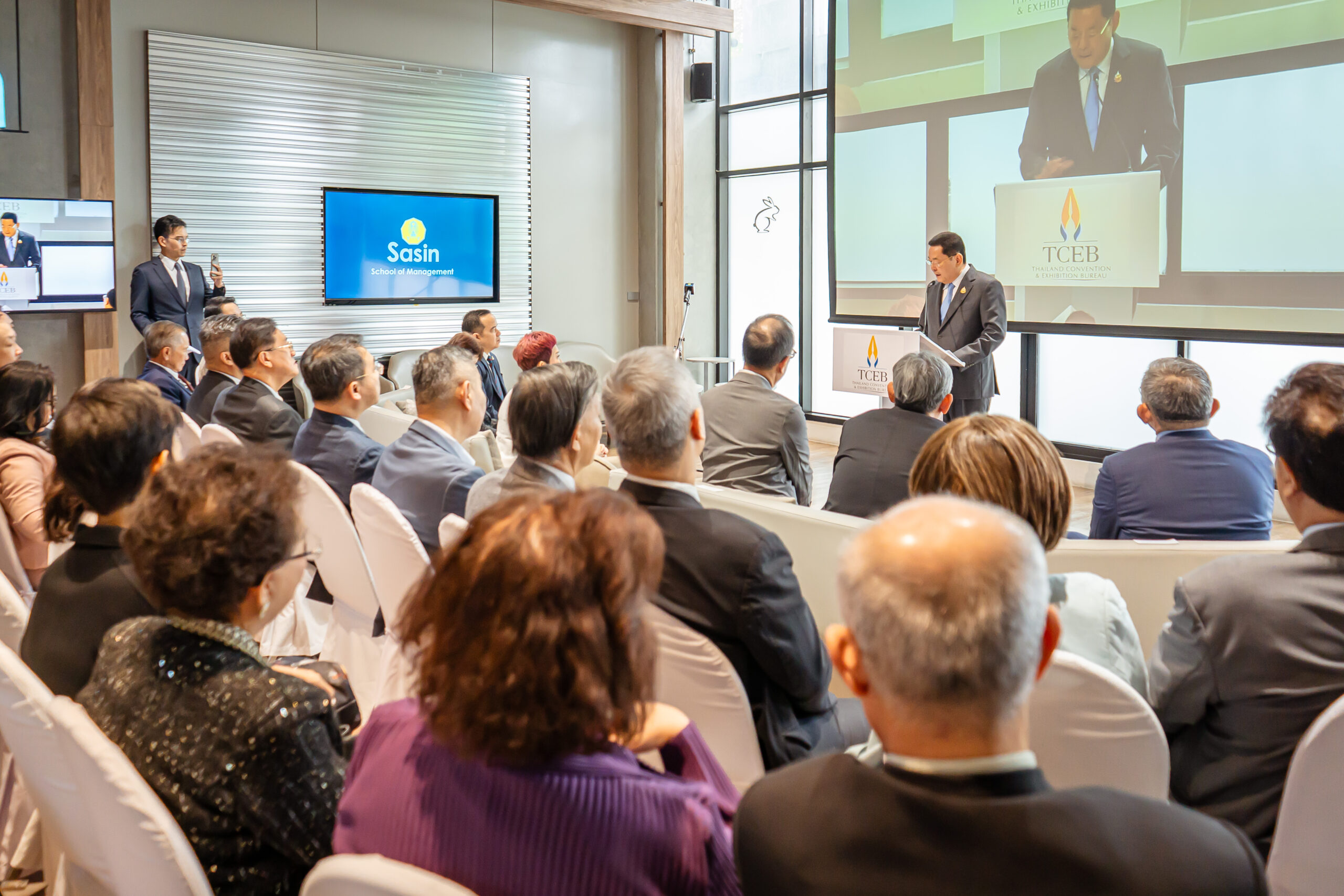 ศูนย์วิจัยและให้คำปรึกษา สถาบันบัณฑิตฯ ศศินทร์ (Sasin Management Consulting — SMC) ร่วมกับ สำนักงานส่งเสริมการจัดประชุมและนิทรรศการ (องค์การมหาชน) หรือ ทีเส็บ จัดงานเสวนาพิเศษ “Visionary Leaders’ Dialogue: Leading Change and Reimagining MICE in Thailand” ณ สถาบันบัณฑิตบริหารธุรกิจศศินทร์แห่งจุฬาลงกรณ์มหาวิทยาลัย เมื่อวันที่ 15 ตุลาคมที่ผ่านมา โดยมีตัวแทนจากภาครัฐและเอกชนเข้าร่วมงาน เพื่อพูดคุยแลกเปลี่ยนเกี่ยวกับบทบาทของไมซ์ต่อการลงทุนและการส่งเสริมให้ประเทศไทยเป็นศูนย์กลางเศรษฐกิจของภูมิภาคในอนาคตอันใกล้