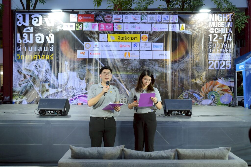 คณะวิทยาศาสตร์ จุฬาลงกรณ์มหาวิทยาลัยเปิด “พิพิธภัณฑ์ยามค่ำคืน” (Night at the Museum) 2568 โดยมี ศ.ดร.วิเลิศ ภูริวัชร อธิการบดีจุฬาฯ เป็นประธานในพิธีเปิดงาน และ ศ.ดร.ประณัฐ โพธิยะราช คณบดีคณะวิทยาศาสตร์ จุฬาฯ กล่าวรายงานวัตถุประสงค์การจัดงาน ณ ลานอะตอม คณะวิทยาศาสตร์ จุฬาฯ เมื่อวันที่ 12 ธันวาคม 2568