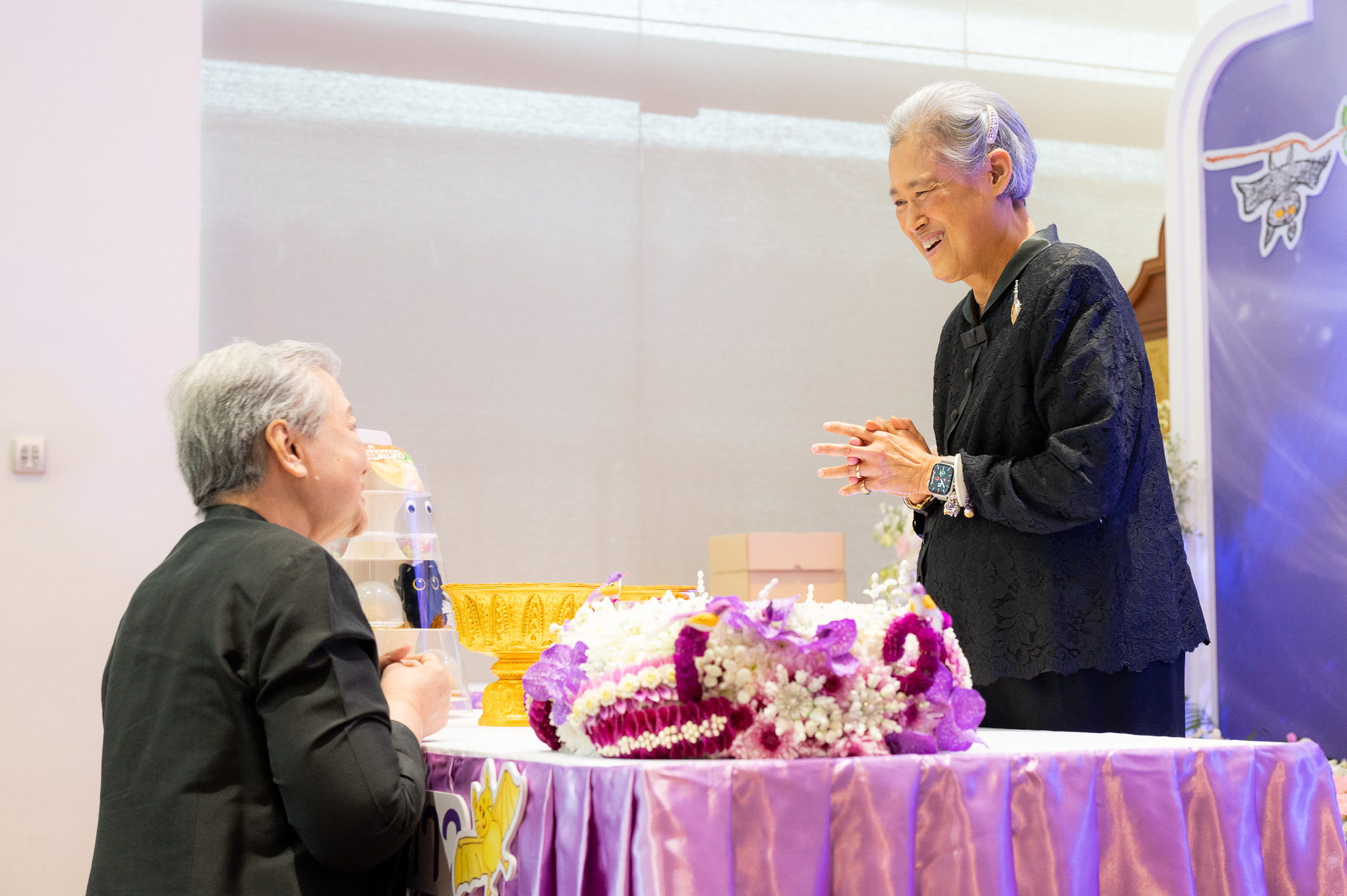 ในการนี้ สมเด็จพระกนิษฐาธิราชเจ้า กรมสมเด็จพระเทพรัตนราชสุดา ฯ สยามบรมราชกุมารีทรงฉายพระฉายาลักษณ์ร่วมกับนักแสดงพระราชทาน เพลงประกอบบทพระราชนิพนธ์เรื่อง “ค้างคาว” จากนั้นเสด็จไปยังห้องโถงกระจก หอประชุมจุฬาฯ พระราชทานขนมค้างคาวแก่ผู้มีอุปการคุณที่ถวายเงินเพื่อสมทบทุนมูลนิธิสิรินธรจำนวน 20 ราย และทรงฉายพระฉายาลักษณ์ร่วมกับนักแสดงกิตติมศักดิ์ ชุดเสด็จไปกิติพิมานสวรรค์ คณะกรรมการจัดงานวันมูลนิธิสิรินธร ผู้บริหาร แลคณะกรรมการจุฬาลงกรณ์มหาวิทยาลัย