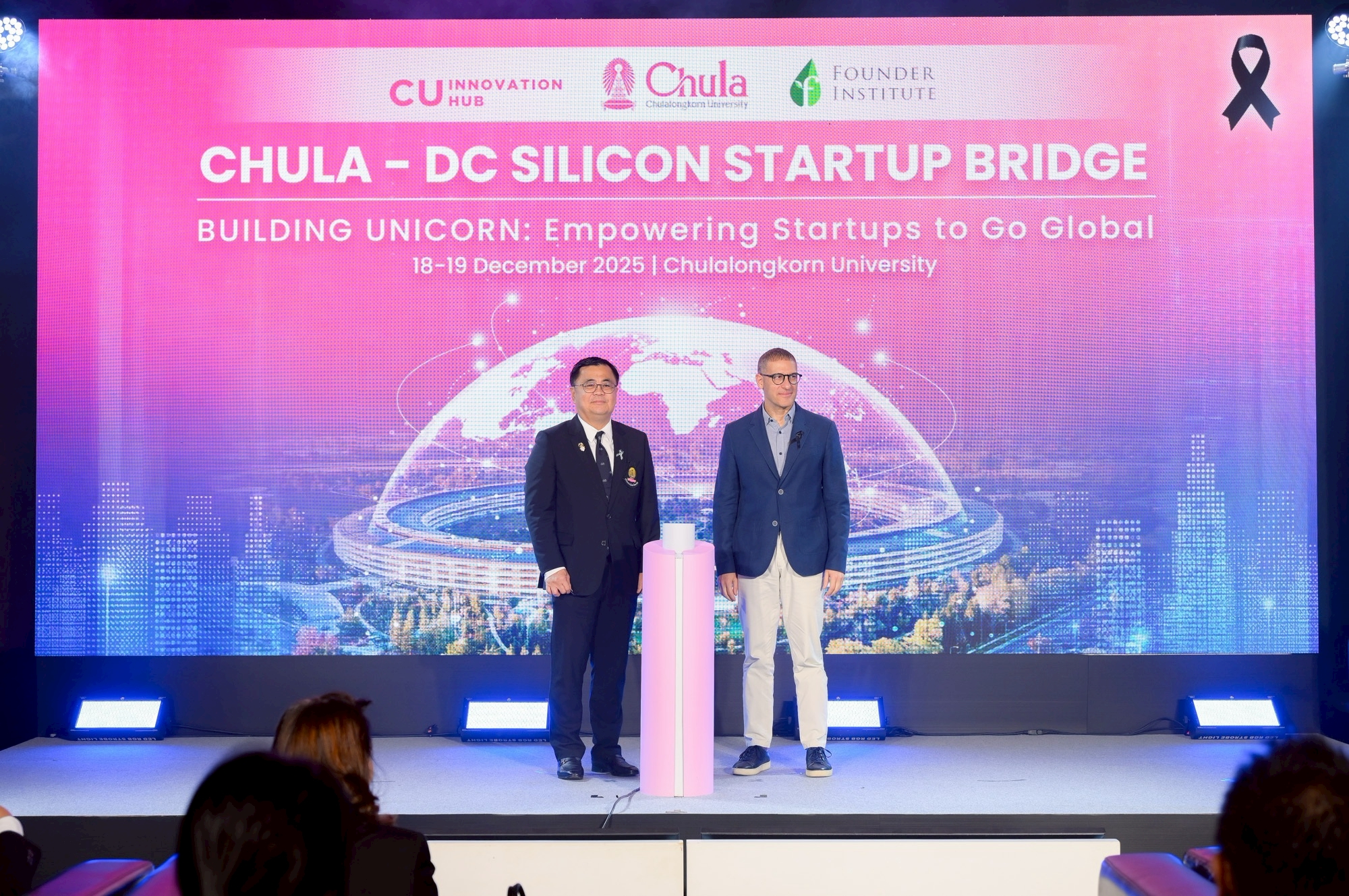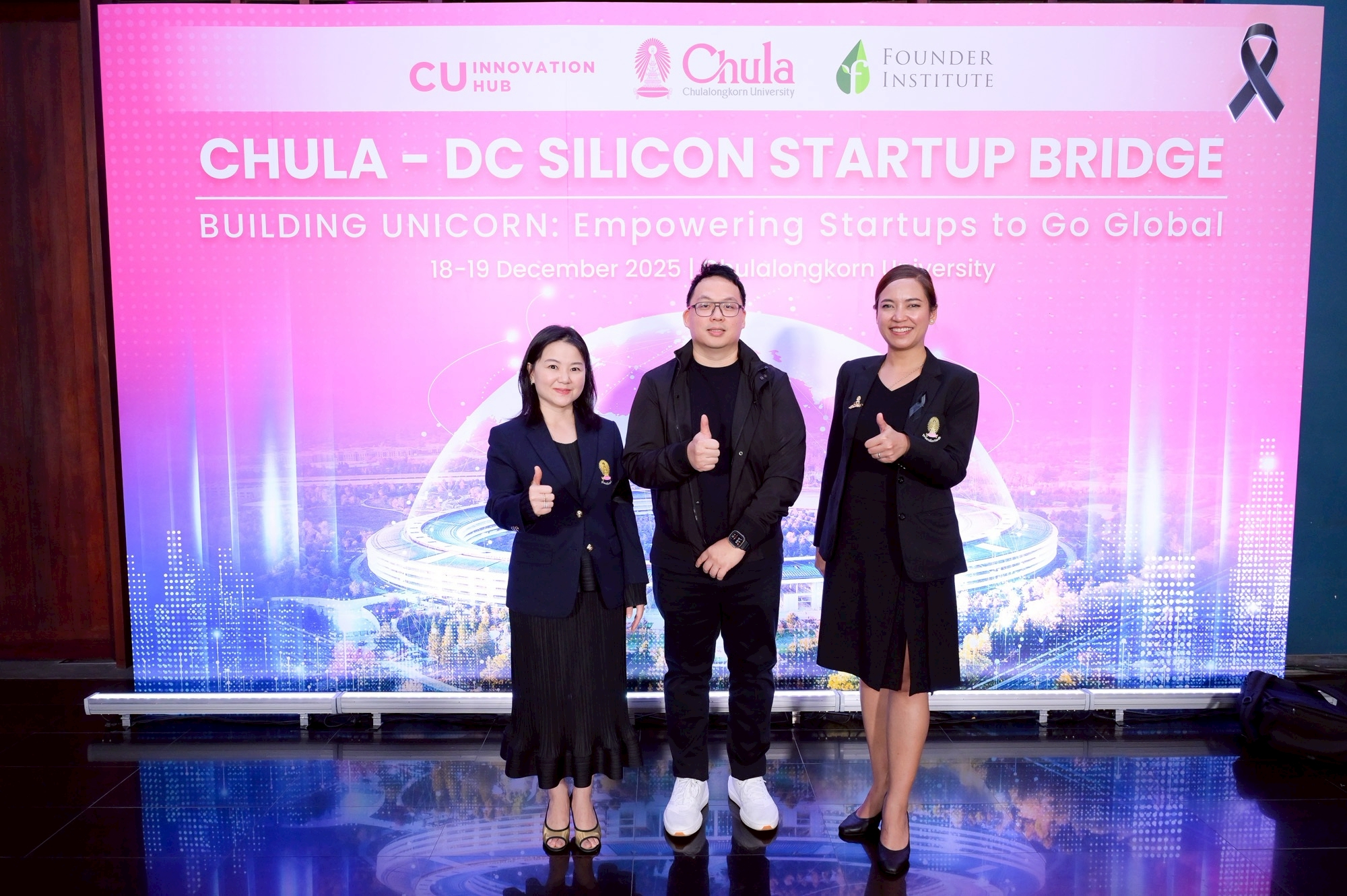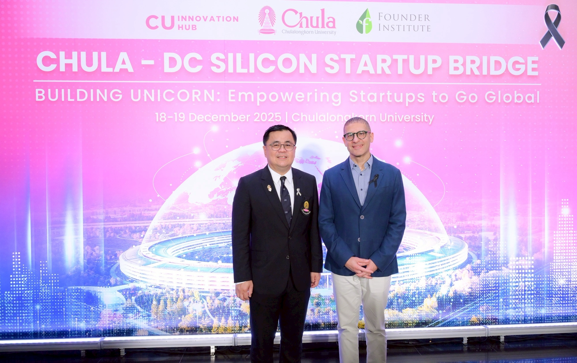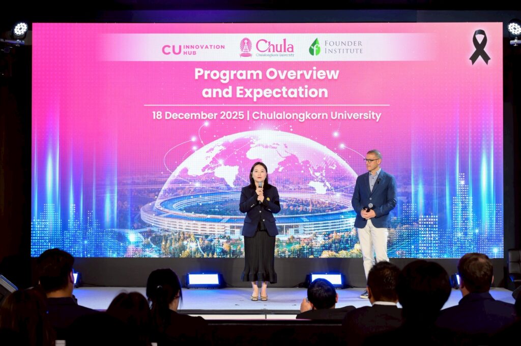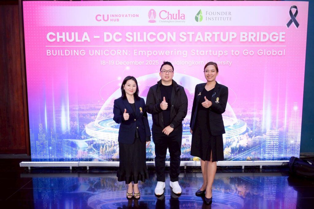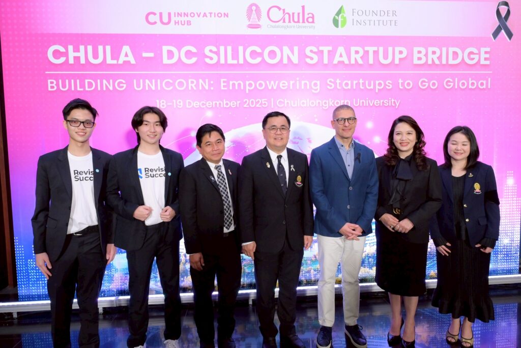 ศูนย์กลางนวัตกรรมแห่งจุฬาลงกรณ์มหาวิทยาลัย (CU Innovation Hub) จุฬาฯ ร่วมกับ Founder Institute (FI) ประเทศสหรัฐอเมริกา” เปิดโครงการ “ติดอาวุธเสริมศักยภาพธุรกิจนวัตกรรมสู่สากล (Go Global Startup Bootcamp): Chula – DC Silicon Startup Bridge” ปั้นสตาร์ทอัพไทยสู่เวทีโลก งานปฐมนิเทศโครงการฯ จัดขึ้นระหว่างวันที่ 18–19 ธันวาคม 2568 โดยมี ศ.ดร.วิเลิศ ภูริวัชร อธิการบดีจุฬาฯ เป็นประธานกล่าวเปิดงาน ศ.ภญ.ดร.พรอนงค์ อร่ามวิทย์ รองอธิการบดีจุฬาฯ เป็นผู้กล่าวรายงาน เมื่อวันที่ 18 ธันวาคม 2568 ณ ห้องประชุม 103 อาคารเฉลิมราชกุมารี 60 พรรษา (อาคารจามจุรี 10)