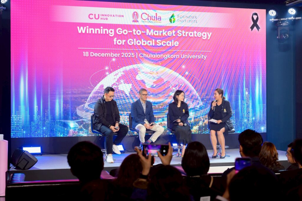 ในงานมีการเสวนาในหัวข้อ “Winning Go-to-Market Strategy for Global Scale” โดย Mr. Guc Ozenci กรรมการผู้จัดการ Founder Institute สาขาวอชิงตัน ดี.ซี. คุณชนม์ชญงค์ ไตรรัตน์เกยูร CEO & Founder @ INCREDEBLE Juice,Inc และ รศ.ภญ.ดร.จิตติมา ลัคนากุล ผู้อำนวยการศูนย์กลางนวัตกรรมจุฬาฯ