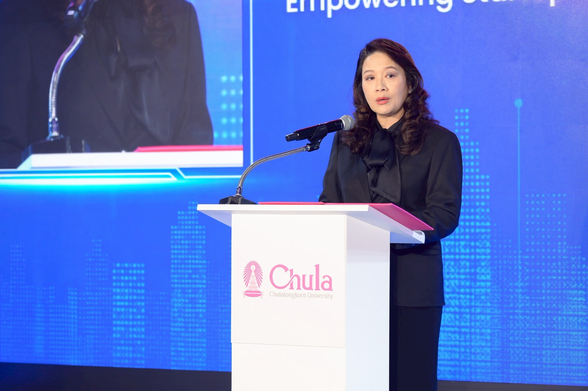 “การเชื่อมโยงผลงานนวัตกรรมจากจุฬาฯ ไม่ได้จำกัดอยู่แค่ในรั้วมหาวิทยาลัยหรือในประเทศไทย แต่บทบาทของไทยคือการนำนวัตกรรมจาก Startup ซึ่งเป็นผลงานที่มีคุณภาพเข้าสู่ระดับโลก ซึ่งนอกจากจะสร้างความภาคภูมิใจในผลงานแล้ว ยังเป็นการนำรายได้จากต่างชาติเข้าสู่ประเทศไทยในอีกทางหนึ่งด้วย” อธิการบดีจุฬาฯ กล่าว