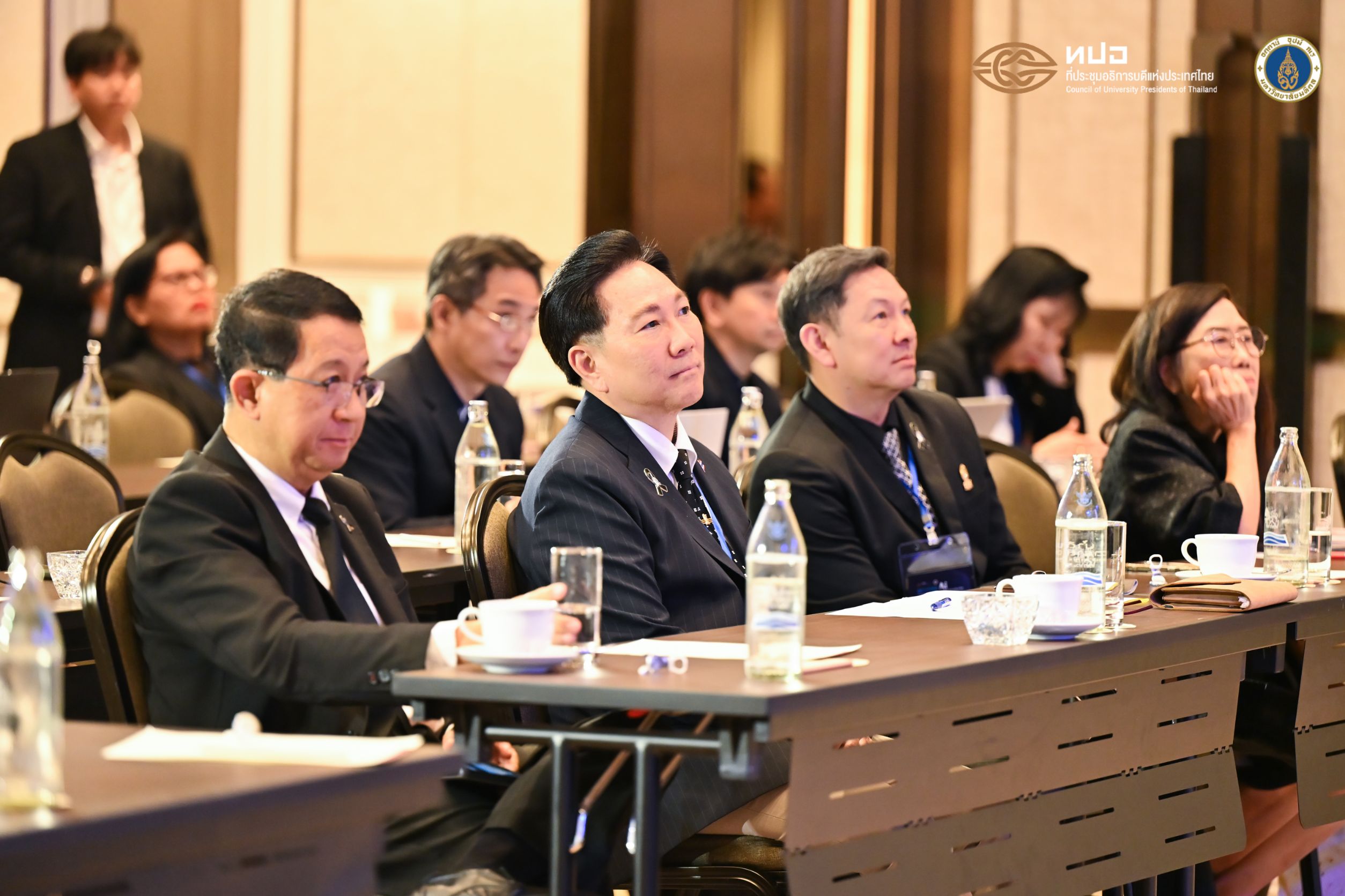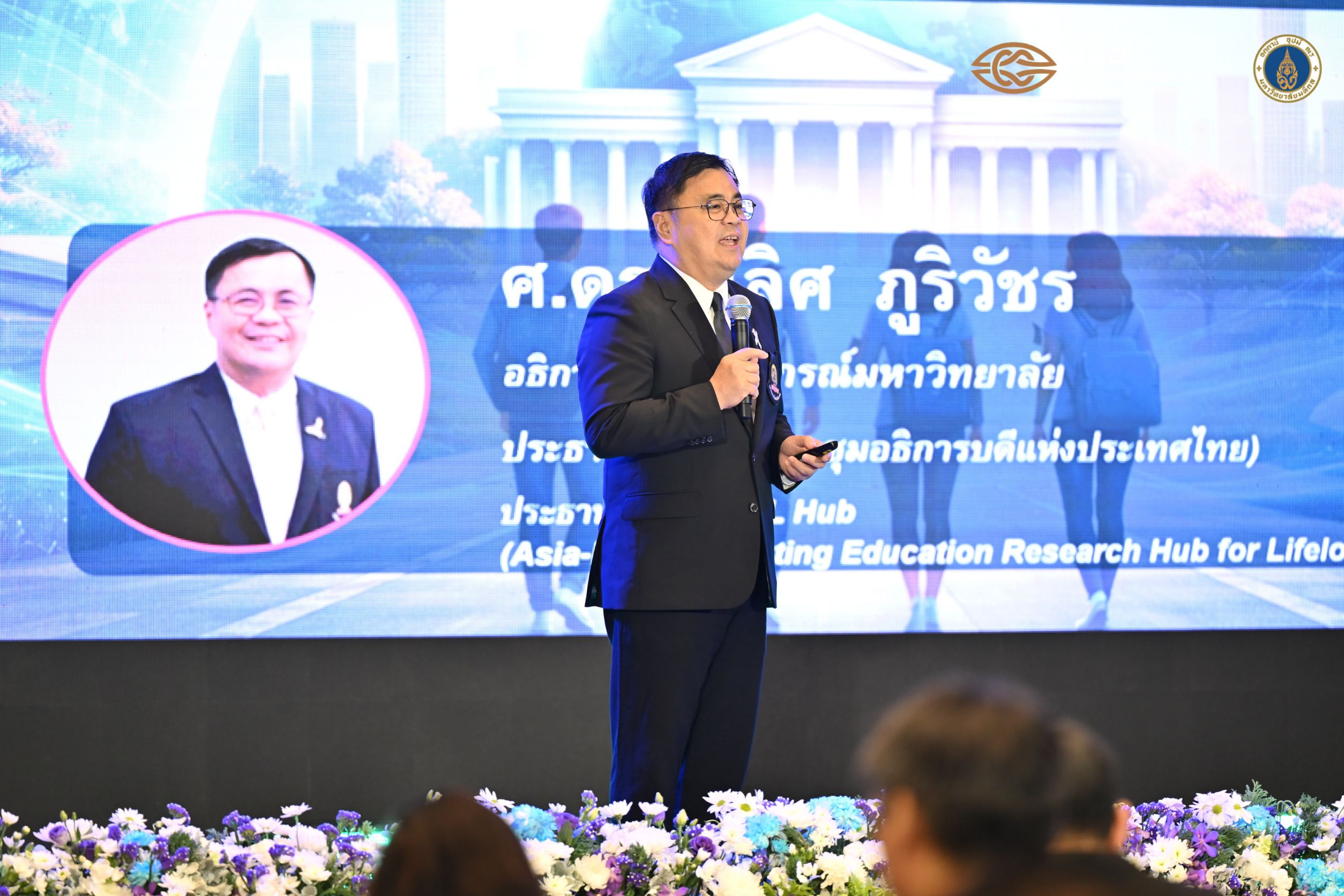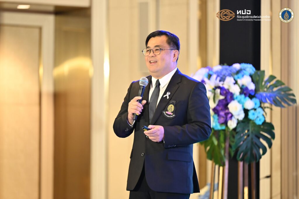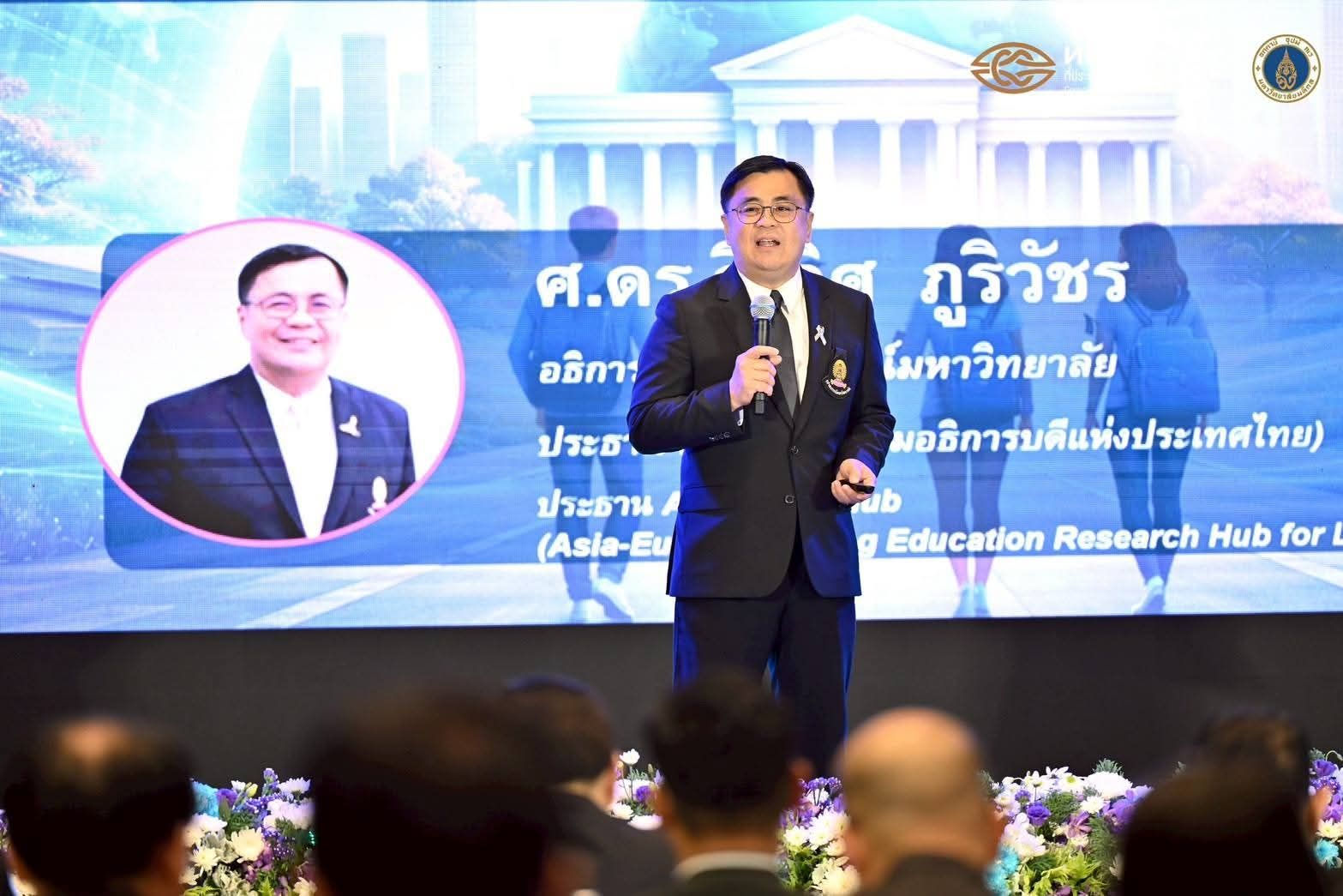 ศ.ดร.วิเลิศ ภูริวัชร อธิการบดีจุฬาฯ ประธานที่ประชุมอธิการบดีแห่งประเทศไทย (ทปอ.) บรรยายพิเศษในหัวข้อ “ก้าวต่อไปของอุดมศึกษาไทย ถอดบทเรียนและกำหนดทิศทางการศึกษาไทย” เมื่อวันที่ 19 ธันวาคม 2568 ณ โรงแรมอีสติน แกรนด์ พญาไท ในการประชุมคณะกรรมการวิชาการและพัฒนาคุณภาพการศึกษา (สัญจร) ครั้งที่ 4/2568 “Beyond AI: การบูรณาการเทคโนโลยีอย่างยั่งยืนในอุดมศึกษาไทย” (Higher Education 6.0: Building Sustainable Learning Ecosystems in the Digital Age) จัดโดยที่ประชุมอธิการบดีแห่งประเทศไทย (ทปอ.) ร่วมกับมหาวิทยาลัยมหิดล โดยมี ศ.นพ.ปิยะมิตร ศรีธรา อธิการบดีมหาวิทยาลัยมหิดล เป็นประธานเปิดการประชุม มีอธิการบดี ผู้บริหารสถาบันอุดมศึกษา และผู้แทนจากมหาวิทยาลัยต่าง ๆ เข้าร่วมการประชุมวิชาการครั้งนี้
