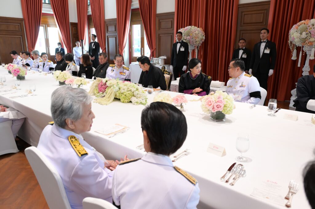 รศ.ดร.ศิริเดช สุชีวะ รองอธิการบดี ทูลเกล้าฯ ถวายสูจิบัตรแด่สมเด็จพระราชาธิบดีจิกมี เคเซอร์ นัมเกล วังชุก ศ.ดร.ปาริชาต สถาปิตานนท์ รองอธิการบดี ทูลเกล้าฯ ถวายสูจิบัตรแด่สมเด็จพระราชินี เจตซุน เพมา วังชุก รศ.ดร.ปกรณ์ ศิริประกอบ คณบดีคณะรัฐศาสตร์ ทูลเกล้าฯ ถวายเข็มวิทยฐานะแด่สมเด็จพระราชาธิบดีจิกมี เคเซอร์ นัมเกล วังชุก รศ.ดร.ภาวิกา ศรีรัตนบัลล์ ผู้อำนวยการสถาบันเอเชียศึกษา ทูลเกล้าฯ ถวายเข็มวิทยฐานะแด่สมเด็จพระราชินี เจตซุน เพมา วังชุก