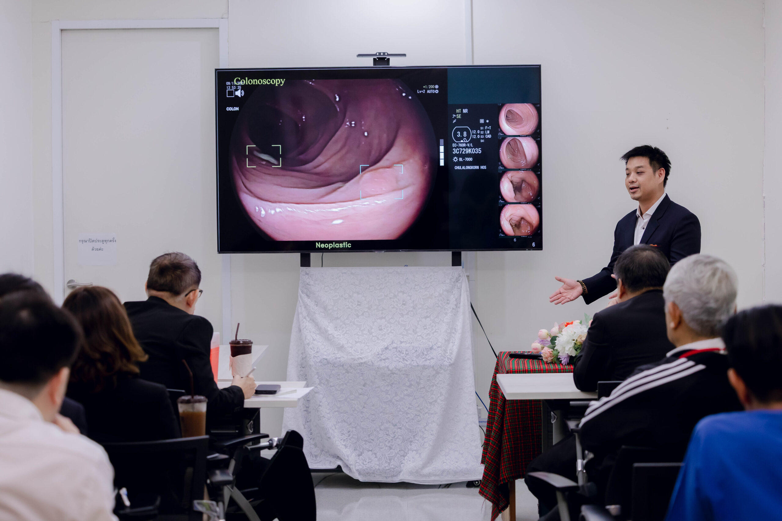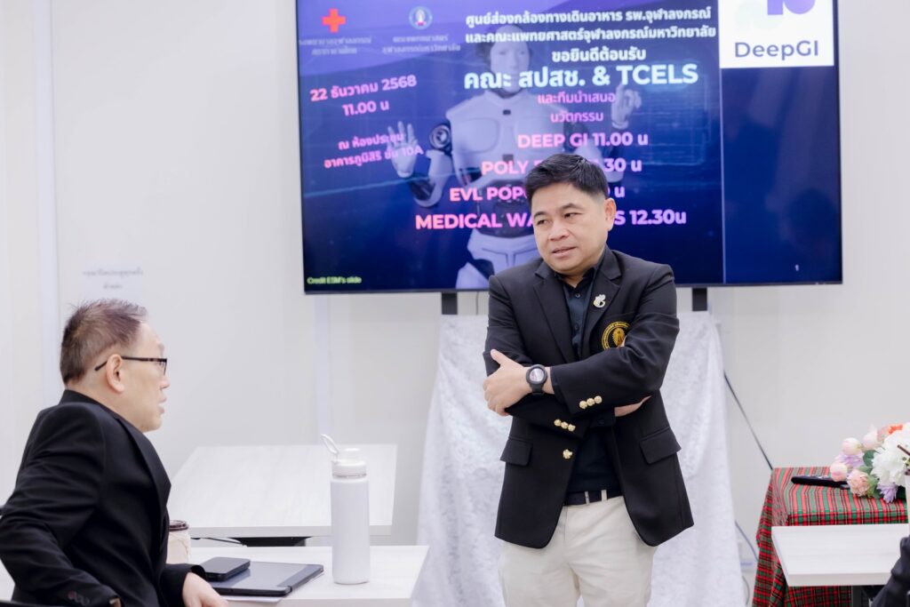 จุฬาลงกรณ์มหาวิทยาลัย ร่วมกับศูนย์ส่องกล้องทางเดินอาหาร โรงพยาบาลจุฬาลงกรณ์ สภากาชาดไทย จัดการประชุมเพื่อนำเสนอผลงานนวัตกรรมทางการแพทย์ต่อสำนักงานหลักประกันสุขภาพแห่งชาติ (สปสช.) เมื่อวันจันทร์ที่ 22 ธันวาคม 2568 ณ ห้องประชุมศูนย์ส่องกล้องทางเดินอาหาร อาคารภูมิสิริมังคลานุสรณ์ ชั้น 10 โซน A โรงพยาบาลจุฬาลงกรณ์ สภากาชาดไทย
