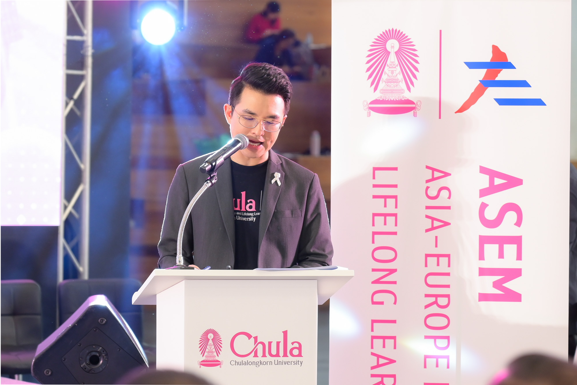 จากนั้น รศ.ดร.ธิติ บวรรัตนารักษ์ คณบดีบัณฑิตวิทยาลัย กล่าวถึงการพัฒนาระบนิเวศน์การเรียนรู้ตลอดชีวิตของจุฬาฯ และ ศ.ดร.พลกฤษณ์ แสงวนิช ประธานคณะกรรมการจัดตั้งวิทยาลัยส่งเสริมการเรียนรู้ตลอดชีวิตเพื่อประชาชนแห่งจุฬาลงกรณ์มหาวิทยาลัย (Chula XL) กล่าวรายงานถึงวัตถุประสงค์และการจัดตั้งวิทยาลัย