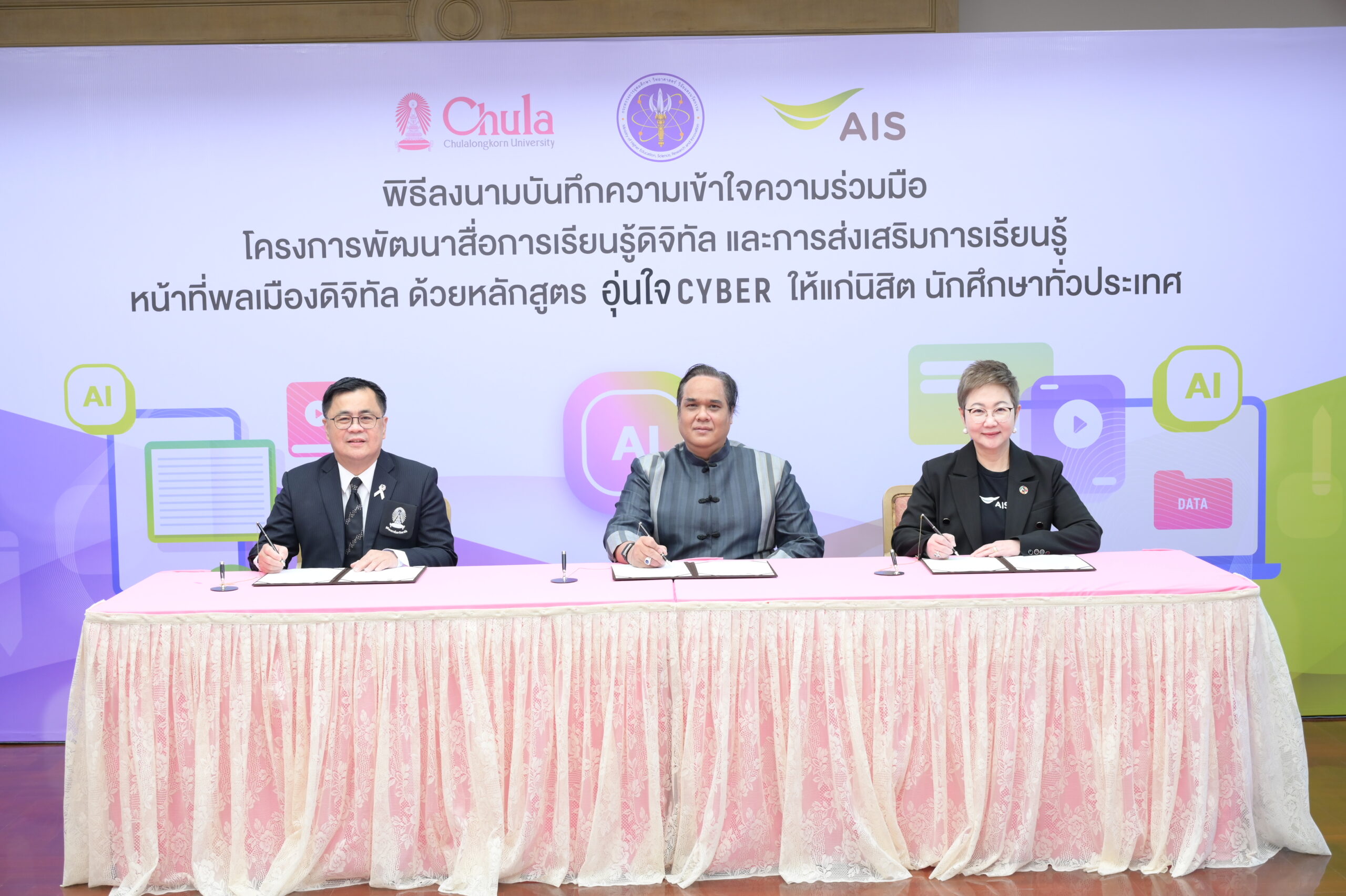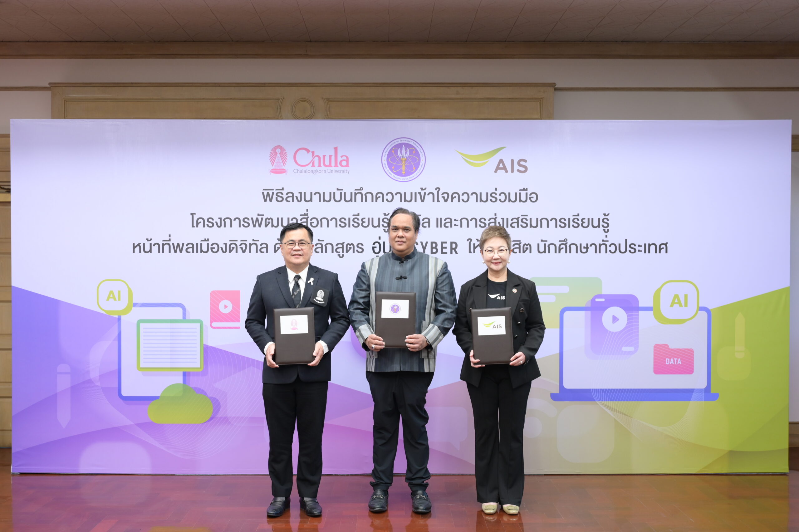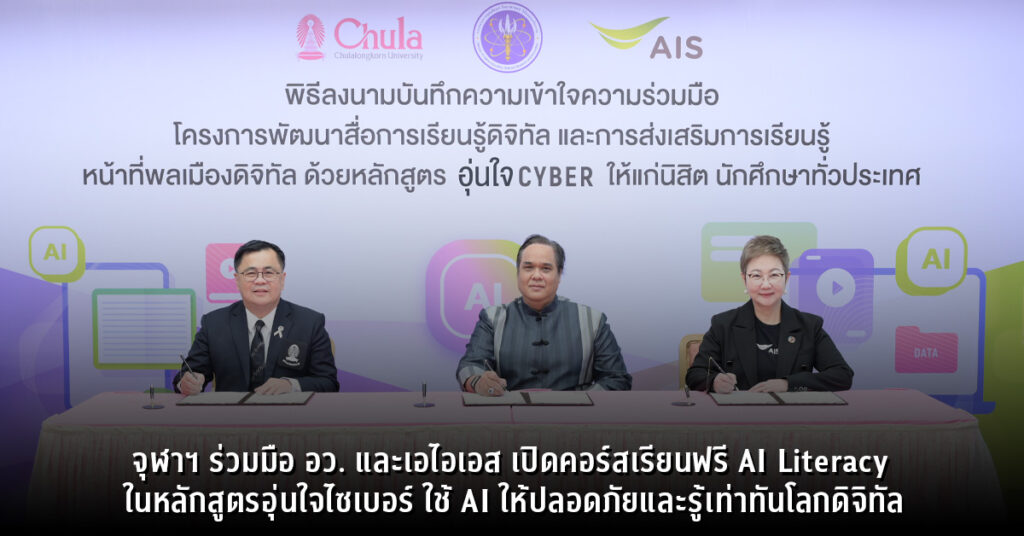 จุฬาลงกรณ์มหาวิทยาลัย ร่วมมือกับสำนักงานปลัดกระทรวงการอุดมศึกษา วิทยาศาสตร์ วิจัยและนวัตกรรม และเอไอเอส ชวนคนไทยอัปสกิลใช้ AI ให้ปลอดภัยกับคอร์สเรียนผ่านหลักสูตรดิจิทัล อุ่นใจไซเบอร์ : AI Literacy ใช้ AI ให้เป็น พร้อมต่อยอดในระบบการศึกษา นับเป็นหน่วยกิตและเป็นรายวิชาในมหาวิทยาลัย เรียนได้ทุกที่ทุกเวลาเมื่อมีอินเทอร์เน็ต เพื่อให้คนไทยใช้ AI ได้อย่างมั่นใจ และปลอดภัย เปิดให้เรียนฟรีกุมภาพันธ์ 2569