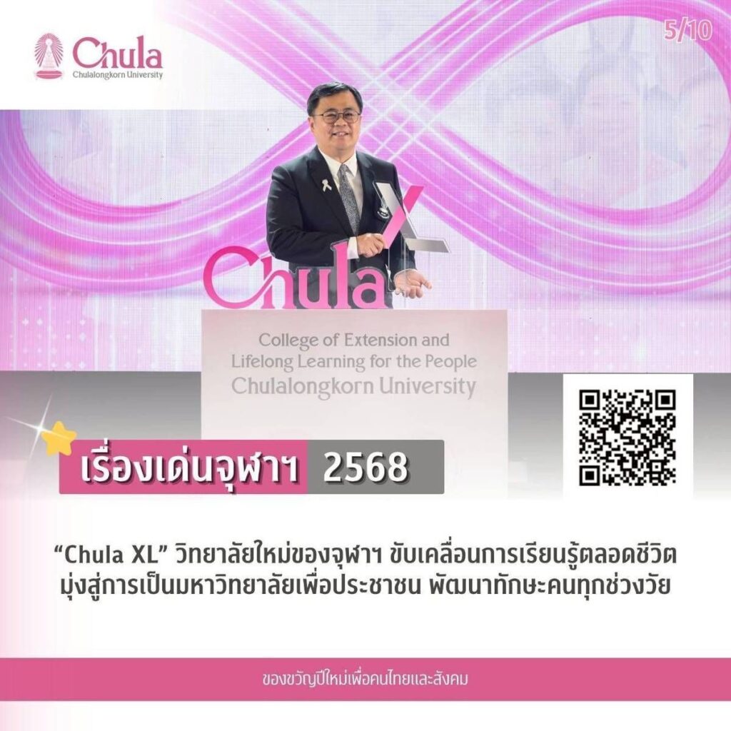 5. “Chula XL” วิทยาลัยใหม่ของจุฬาฯ ขับเคลื่อนการเรียนรู้ตลอดชีวิต มุ่งสู่การเป็นมหาวิทยาลัยเพื่อประชาชน พัฒนาทักษะคนทุกช่วงวัย