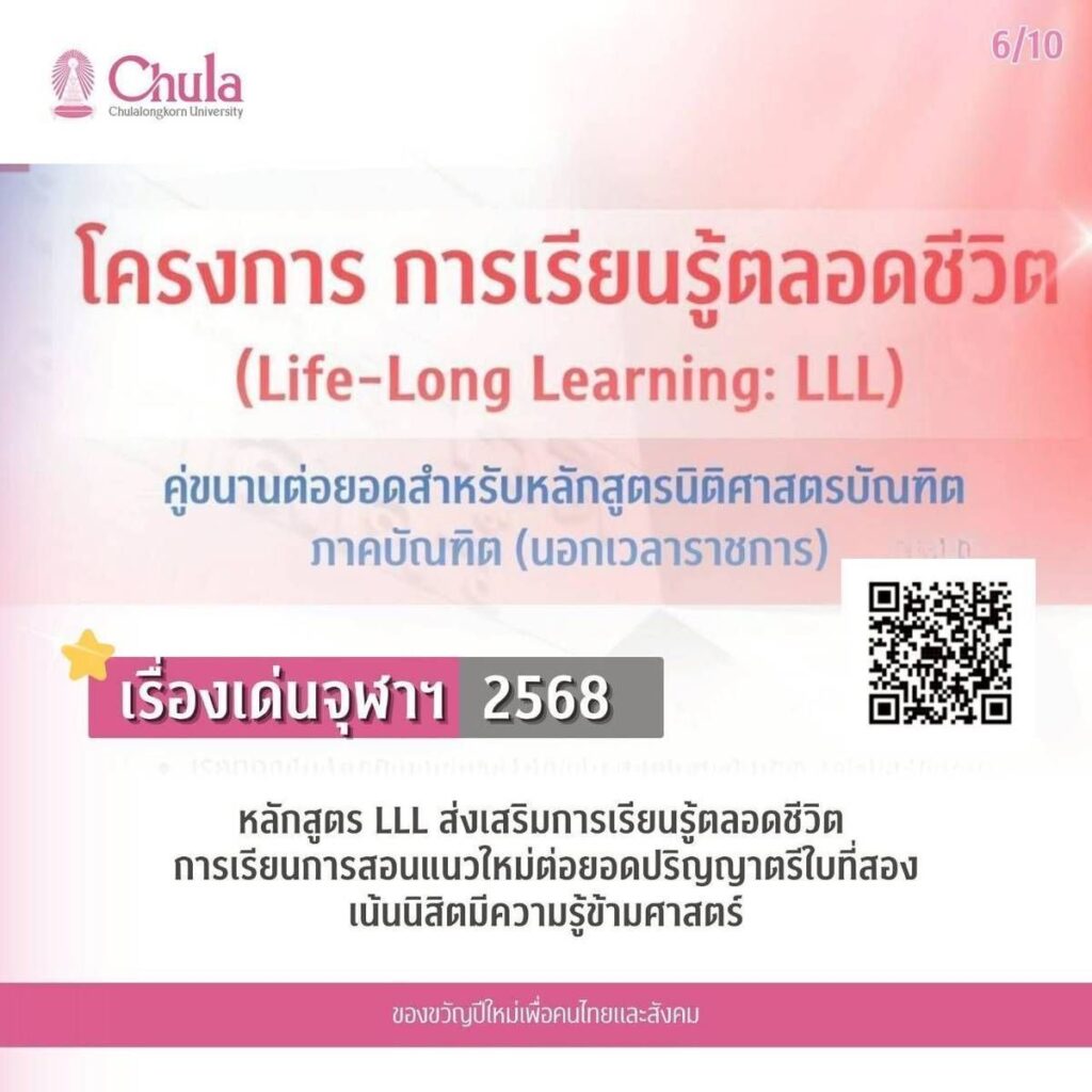 6. หลักสูตร LLL ส่งเสริมการเรียนรู้ตลอดชีวิต การเรียนการสอนแนวใหม่ต่อยอดปริญญาตรีใบที่สอง เน้นนิสิตมีความรู้ข้ามศาสตร์