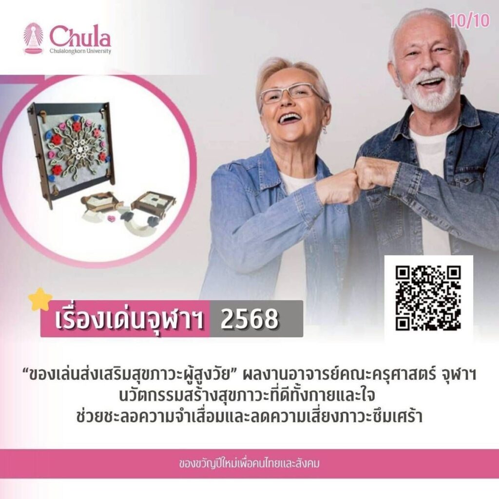 10. “ของเล่นส่งเสริมสุขภาวะผู้สูงวัย” ผลงานอาจารย์คณะครุศาสตร์ จุฬาฯ นวัตกรรมสร้างสุขภาวะที่ดีทั้งกายและใจ ช่วยชะลอความจำเสื่อมและลดความเสี่ยงภาวะซึมเศร้า