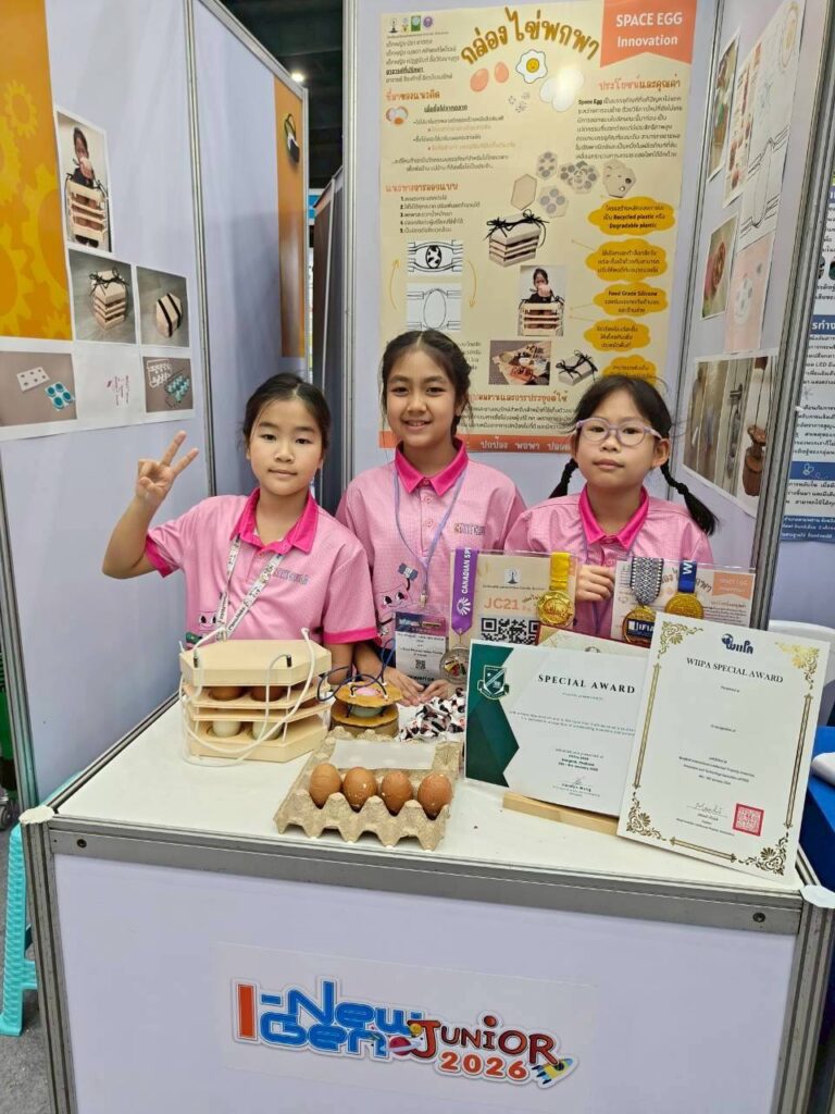 6. “กล่องไข่พกพา” ผลงานของ ด.ญ.มิรา ชาตกุล ด.ญ.เมลดา ศศิพงศ์ไพโรจน์ และ ด.ญ. ณัฏฐนันท์ ชื้อวัฒนานุกูร ได้รับรางวัลเหรียญเงิน และ 4 Special Award จากประเทศแคนาดา สาธารณรัฐประชาชนจีน สหพันธรัฐมาเลเซีย และสาธารณรัฐฟิลิปปินส์