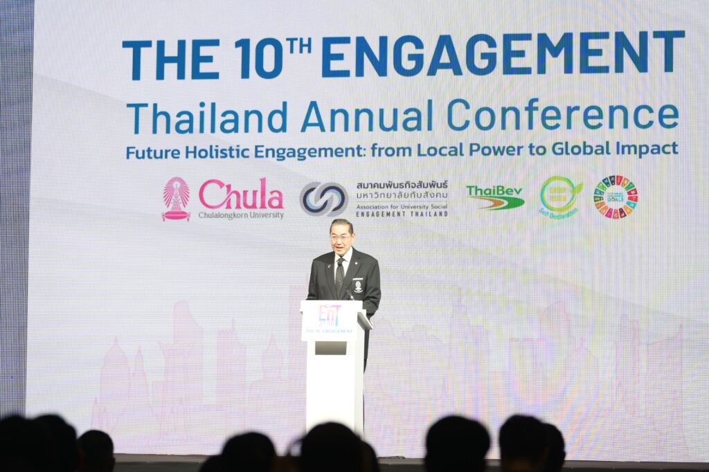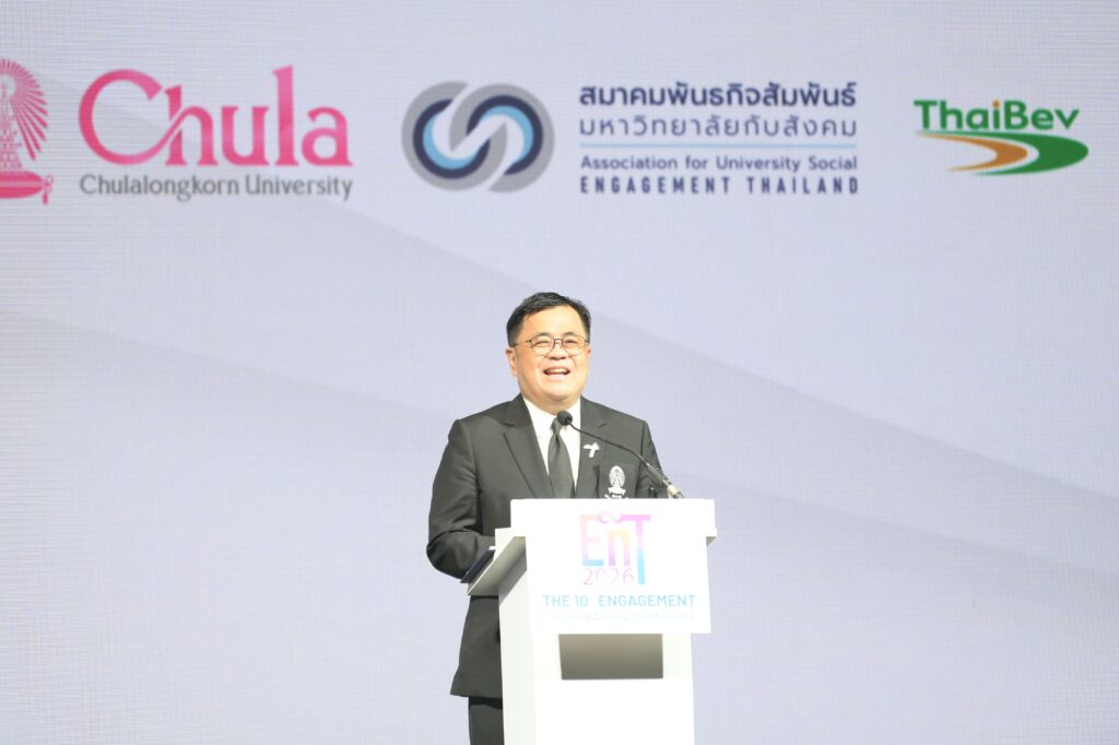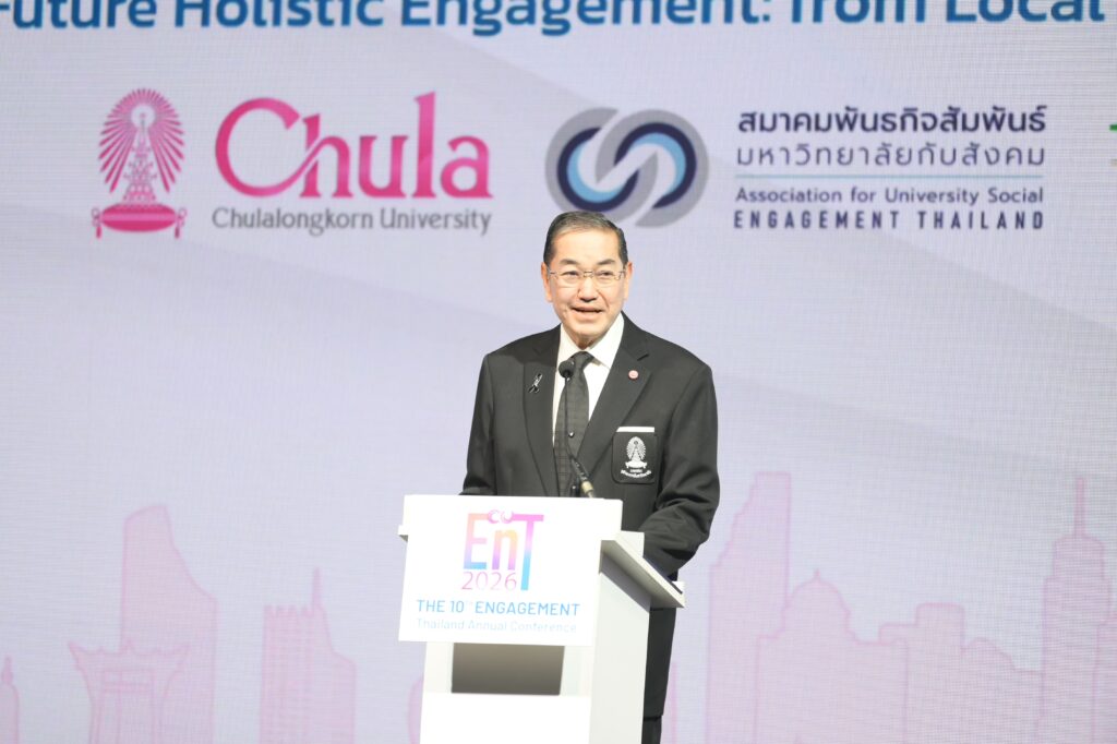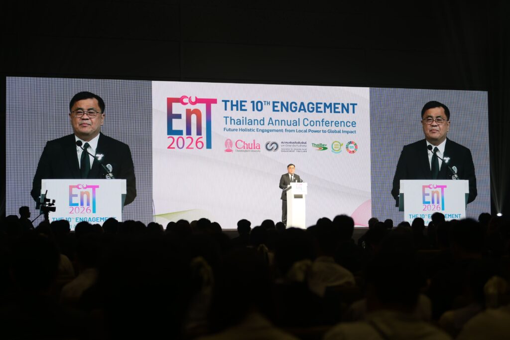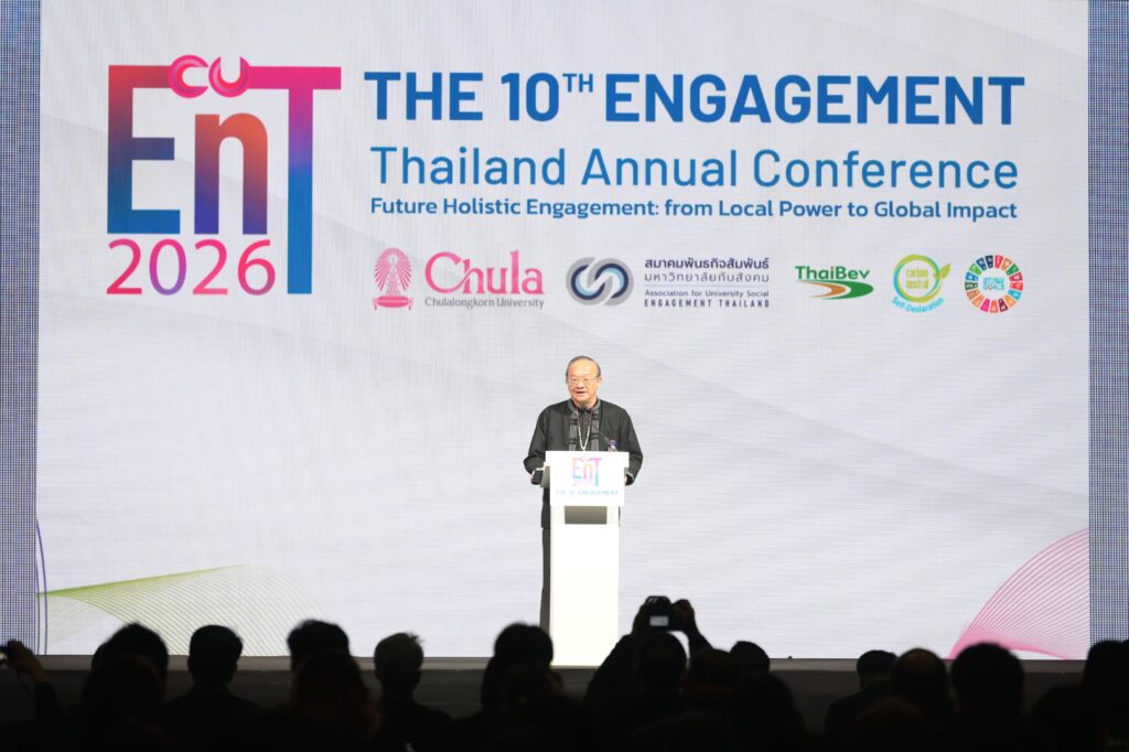 จุฬาลงกรณ์มหาวิทยาลัย ร่วมกับสมาคมพันธกิจสัมพันธ์มหาวิทยาลัยกับสังคม (EnT) จัดงานประชุมวิชาการระดับชาติ Engagement Thailand ครั้งที่ 10 Future Holistic Engagement – from Local Power to Global Impact ระหว่างวันที่ 13 – 16 มกราคม 2569 ณ ศูนย์การค้าสามย่านมิตรทาวน์ และจุฬาลงกรณ์มหาวิทยาลัย เพื่อให้เกิดการแลกเปลี่ยนเรียนรู้และขับเคลื่อนการดำเนินงานมหาวิทยาลัยเพื่อสังคมระหว่างเครือข่ายทั้งในประเทศและต่างประเทศ รวมทั้งส่งเสริมและพัฒนานักวิจัยรุ่นใหม่ให้มีทักษะ และความรู้ด้านการทำวิจัยรับใช้สังคม