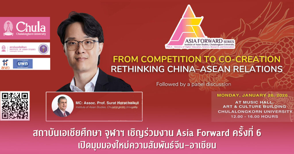 สถาบันเอเชียศึกษา จุฬาฯ เชิญร่วมงาน Asia Forward ครั้งที่ 6 เปิดมุมมองใหม่ความสัมพันธ์จีน–อาเซียน