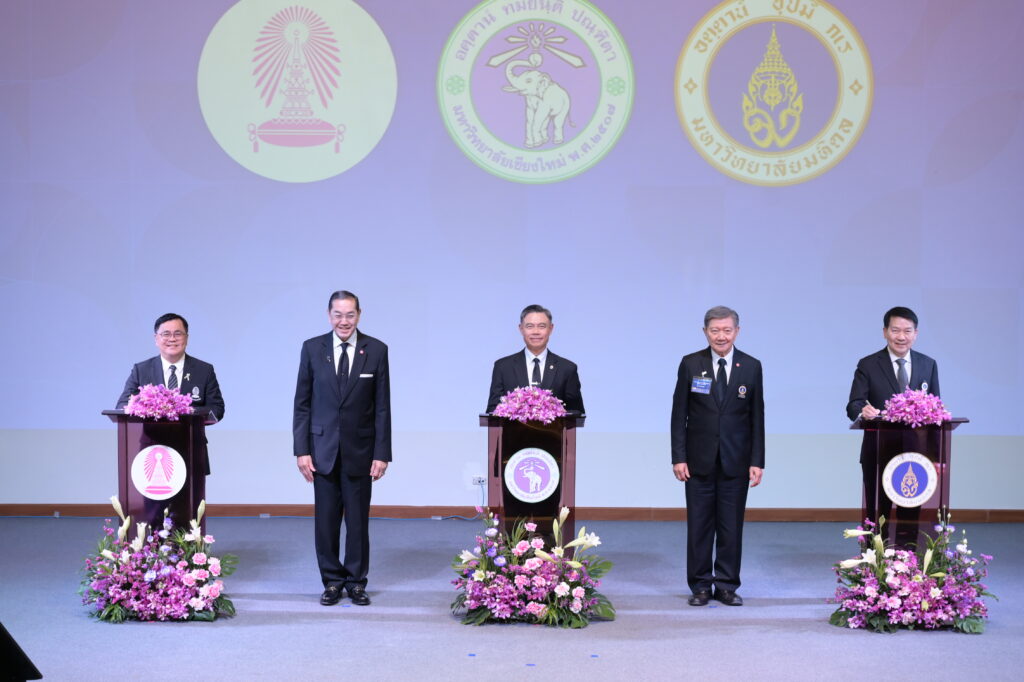 ในโอกาสนี้ ศ.ดร.วิเลิศ ภูริวัชร อธิการบดีจุฬาฯ ศ.ดร.นพ.พงษ์รักษ์ ศรีบัณฑิตมงคล อธิการบดีมหาวิทยาลัยเชียงใหม่ และ ศ.นพ.ปิยะมิตร ศรีธรา อธิการบดีมหาวิทยาลัยมหิดล กล่าวถึงนโยบายและพันธกิจของมหาวิทยาลัยและโครงการที่จะดำเนินการร่วมกัน