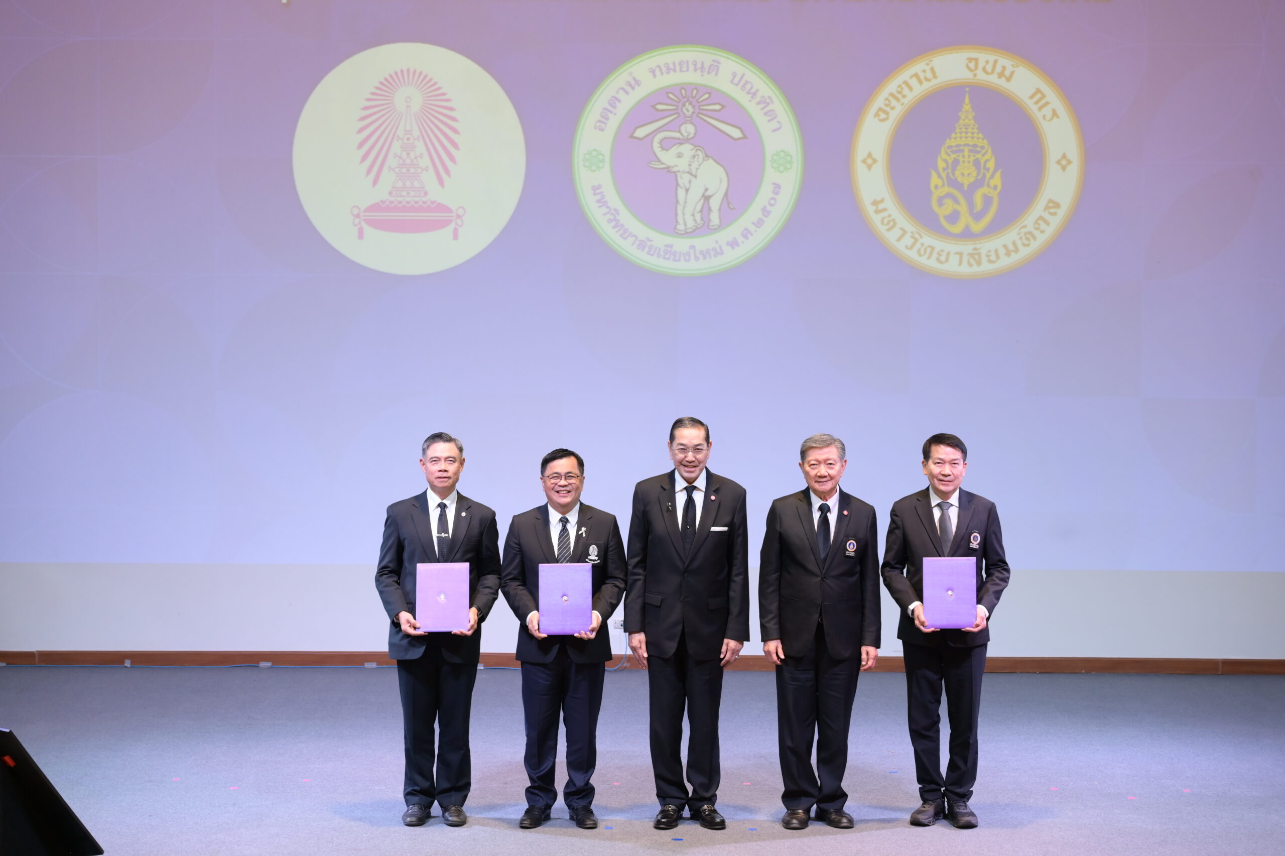 จุฬาลงกรณ์มหาวิทยาลัย มหาวิทยาลัยเชียงใหม่ และมหาวิทยาลัยมหิดลประชุมความร่วมมือสภามหาวิทยาลัยและผู้บริหารสามสถาบันเป็นครั้งแรก และร่วมลงนามบันทึกข้อตกลงความร่วมมือทางวิชาการระหว่างมหาวิทยาลัยสามสถาบัน เมื่อวันที่ 17 มกราคม 2569 ณ หอประชุม NSP Rice Grain Auditorium อุทยานวิทยาศาสตร์และเทคโนโลยี มหาวิทยาลัยเชียงใหม่ เพื่อบูรณาการศักยภาพของสามมหาวิทยาลัยชั้นนำของประเทศ ยกระดับระบบอุดมศึกษาไทย และเสริมขีดความสามารถในการแข่งขันในระดับนานาชาติความร่วมมือระหว่างสามมหาวิทยาลัยในครั้งนี้ขับเคลื่อนภายใต้แนวคิด MC² ซึ่งหมายถึงการผสานพลังของ Mahidol (M) – Chula (C) – Chiang Mai University (CMU) จากความเชี่ยวชาญและจุดแข็งของแต่ละสถาบัน สู่พลังร่วมที่ทวีคูณ เพื่อพัฒนากำลังคน งานวิจัย และนวัตกรรม ตอบโจทย์อนาคตประเทศ