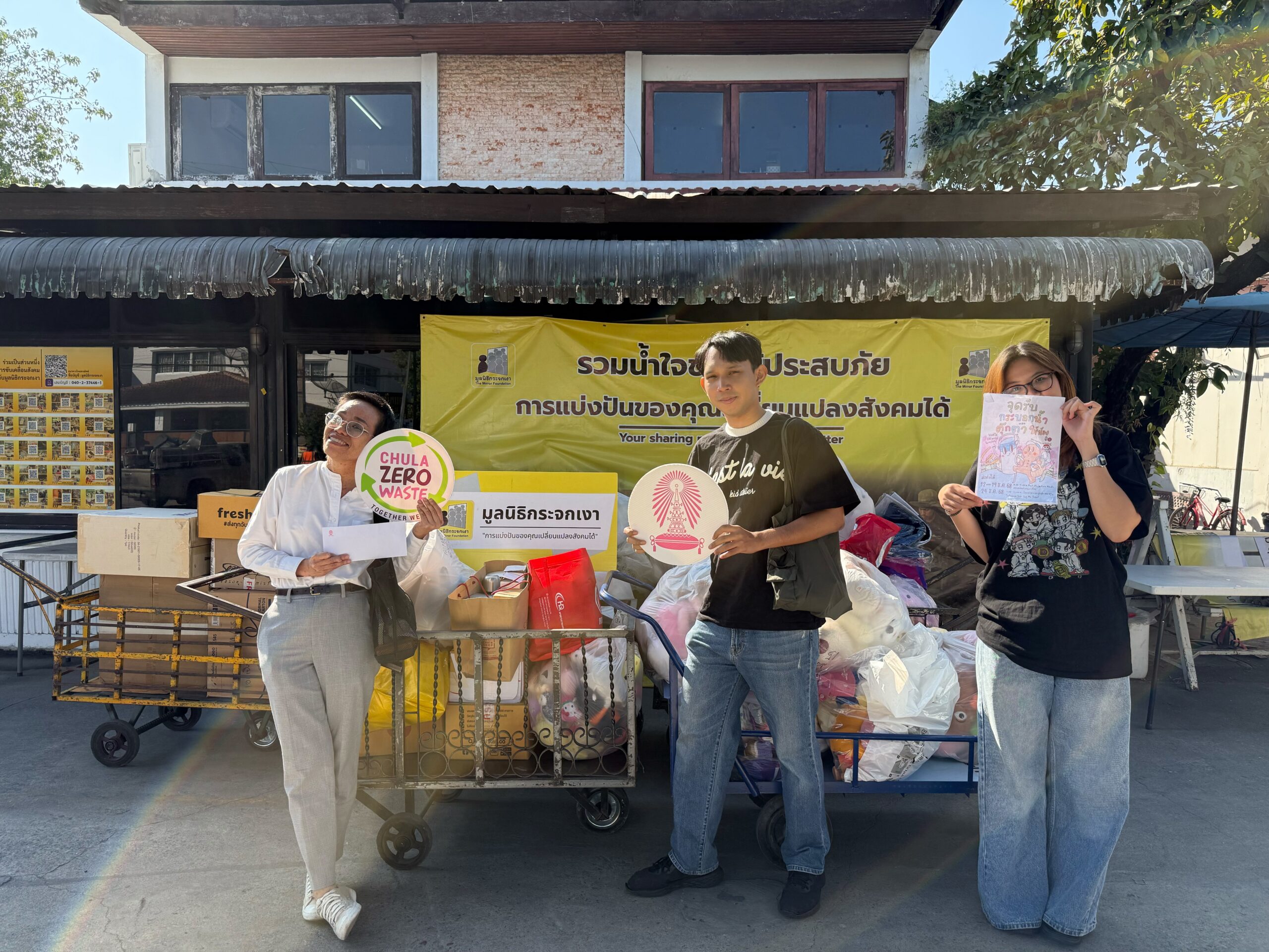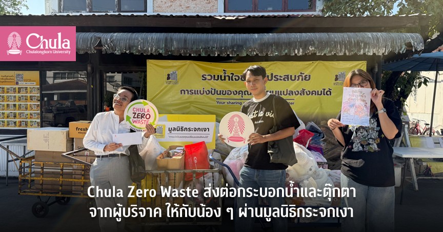 โครงการ Chula Zero Waste โดยสำนักบริหารระบบกายภาพ จุฬาลงกรณ์มหาวิทยาลัย ได้ส่งต่อกระบอกน้ำและตุ๊กตาที่ได้รับการบริจาคจากบุคลากรและบุคคลทั่วไป ผ่านกิจกรรม “Chula Zero Waste ชวนทุกคนร่วมส่งต่อน้องให้น้อง ๆ ปี 2” โดยโครงการฯ โดยส่งมอบกระบอกน้ำที่สภาพดี จำนวน 562 ใบ และตุ๊กตา จำนวน 221 ตัว ให้กับมูลนิธิกระจกเงา เมื่อวันที่ 7 มกราคม 2569 ที่ผ่านมา