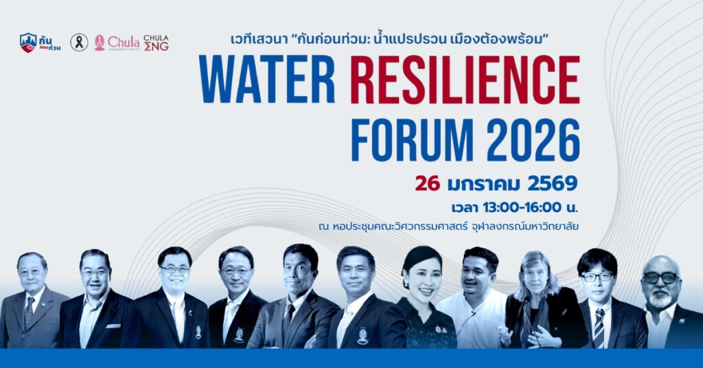 ศูนย์ “กันก่อนท่วม” โดยคณะวิศวกรรมศาสตร์ จุฬาลงกรณ์มหาวิทยาลัยจะจัดเวทีเสวนาภายใต้โครงการ Chula the Impact ครั้งที่ 37 เรื่อง “กันก่อนท่วม: น้ำแปรปรวน เมืองต้องพร้อม” ในวันจันทร์ที่ 26 มกราคม 2569 เวลา 13:00-16:00 น. ณ หอประชุมคณะวิศวกรรมศาสตร์ จุฬาลงกรณ์มหาวิทยาลัย เพื่อเปิดพื้นที่แลกเปลี่ยนข้อมูล ความรู้ และบทเรียนการรับมือความเสี่ยงน้ำ จากเครือข่ายผู้เชี่ยวชาญไทยและนานาชาติ อาทิ นักวิชาการจาก Massachusetts Institute Technology (MIT) สหรัฐอเมริกา เนเธอร์แลนด์ ญี่ปุ่น ร่วมกับภาครัฐ ภาคธุรกิจ ชุมชน และภาคประชาสังคม มุ่งสร้างความเข้าใจ และร่วมกันแก้ปัญหาน้ำให้ทันเวลา เพื่อเปลี่ยนวิกฤตน้ำให้เป็นโอกาสของประเทศ