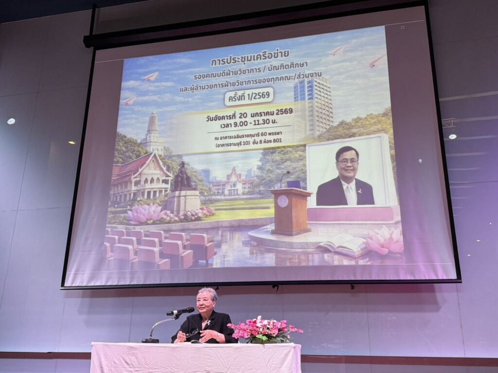 จุฬาลงกรณ์มหาวิทยาลัยโดยสำนักบริหารวิชาการจัดการประชุมเครือข่ายรองคณบดีฝ่ายวิชาการ บัณฑิตศึกษา ผู้อำนวยการฝ่ายวิชาการของทุกคณะและส่วนงาน (CU Academic Network) และประธาน ผู้อำนวยการหลักสููตรระดับปริญญาตรีจากทุกส่วนงาน ครั้งที่ 1/2569 เมื่อวันที่ 20 มกราคม 2569 ณ ห้อง 801 อาคารเฉลิมราชกุมารี 60 พรรษา (อาคารจามจุรี 10) โดยมี ผศ.ดร.ม.ร.ว.กัลยา ติงศภัทิย์ ประธานคณะกรรมการนโยบายวิชาการ กล่าวเปิดการประชุม และให้มุมมองการพัฒนาหลักสูตรและการประกันคุณภาพหลักสูตรของมหาวิทยาลัย ตลอดจนใช้โอกาสที่จุฬาฯ มีการลงนามบันทึกข้อตกลงความร่วมมือทางวิชาการกับมหาวิทยาลัยเชียงใหม่และมหาวิทยาลัยมหิดล ซึ่งเป็นความร่วมมือในลักษณะไตรภาคีในการผนึกกำลังขับเคลื่อนการอุดมศึกษาไทย