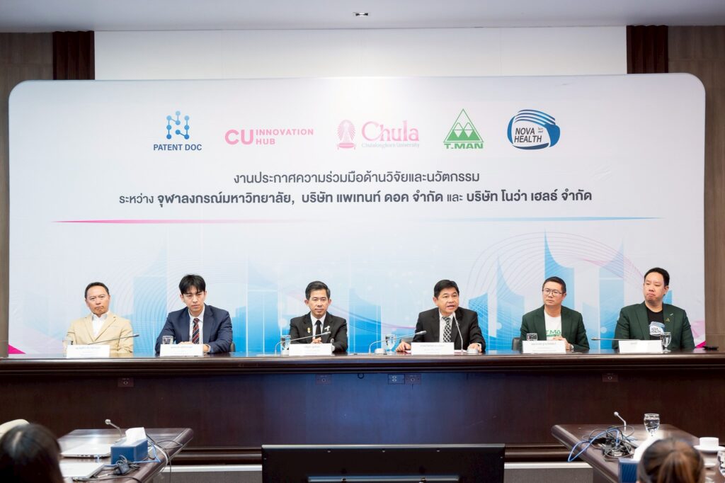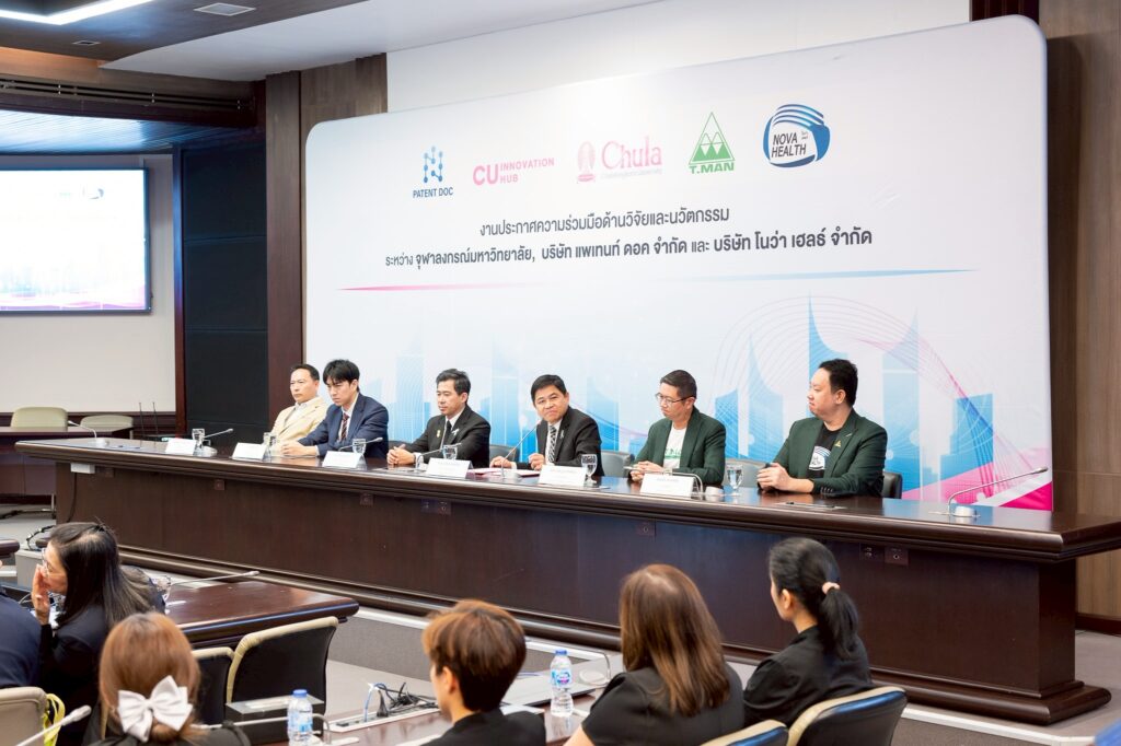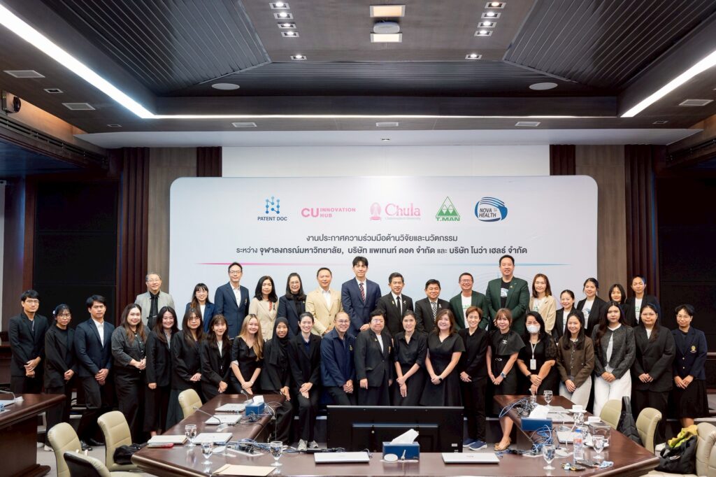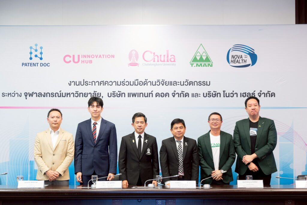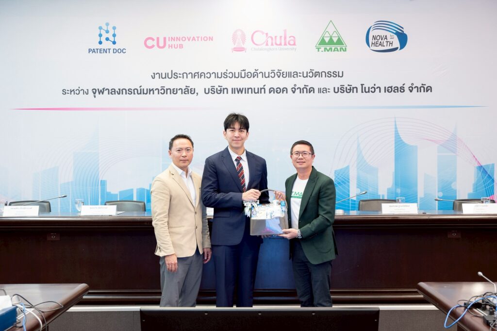 จุฬาลงกรณ์มหาวิทยาลัย ร่วมมือกับบริษัท โนว่า เฮลธ์ จำกัด บริษัทในเครือบริษัท ที.แมน ฟาร์มา ซูติคอล จำกัด (มหาชน) และบริษัท แพเท้นท์ ดอค จำกัด จัดงานประกาศความร่วมมือด้านวิจัยและนวัตกรรม เมื่อวันที่ 22 มกราคม 2569 ณ ห้อง 202 อาคารจามจุรี 4 เพื่อแสดงเจตนารมณ์ในการผนึกกำลังระหว่างสถาบันการศึกษากับภาคเอกชน ในการพัฒนางานวิจัย เทคโนโลยี และนวัตกรรมที่สามารถนำไปใช้ประโยชน์ได้จริง ทั้งในเชิงพาณิชย์และเชิงสังคมอย่างเป็นรูปธรรม โดยมี ศ.นพ.รังสรรค์ ฤกษ์นิมิตร ผู้ช่วยอธิการบดี ด้านนวัตกรรม จุฬาลงกรณ์มหาวิทยาลัย คุณประพล ฐานะโชติพันธ์ ประธานเจ้าหน้าที่บริหาร บริษัท ที.แมน ฟาร์มาซูติคอล จำกัด (มหาชน) และคุณธนวัต เทิดวิกรานต์ กรรมการผู้จัดการบริษัท แพเทนท์ ดอค จำกัด เป็นประธานในงานประกาศความร่วมมือครั้งนี้ ในงานนี้ ศ.ดร.บัญชา พูลโภคา ผู้ช่วยอธิการบดี ด้านงานพัฒนาวิจัย จุฬาฯ ร่วมในงานประกาศความร่วมมือครั้งนี้ด้วย