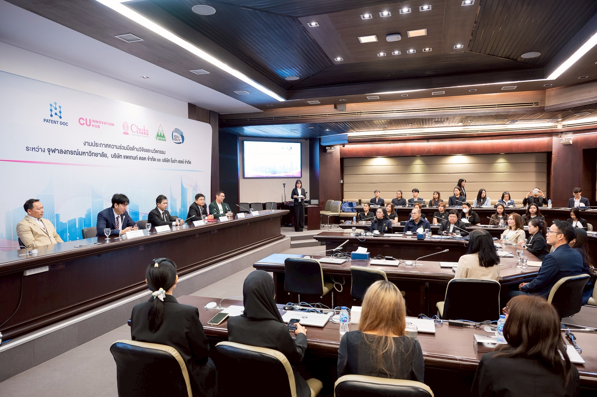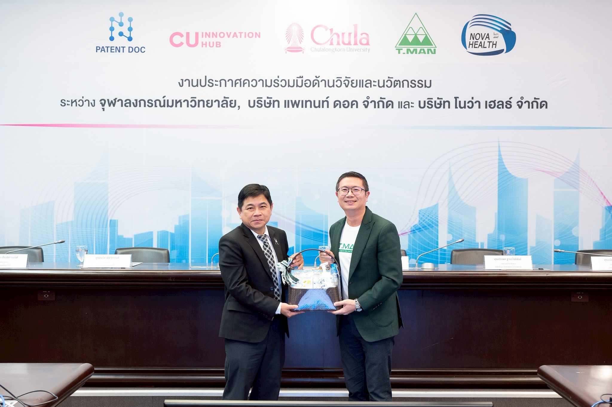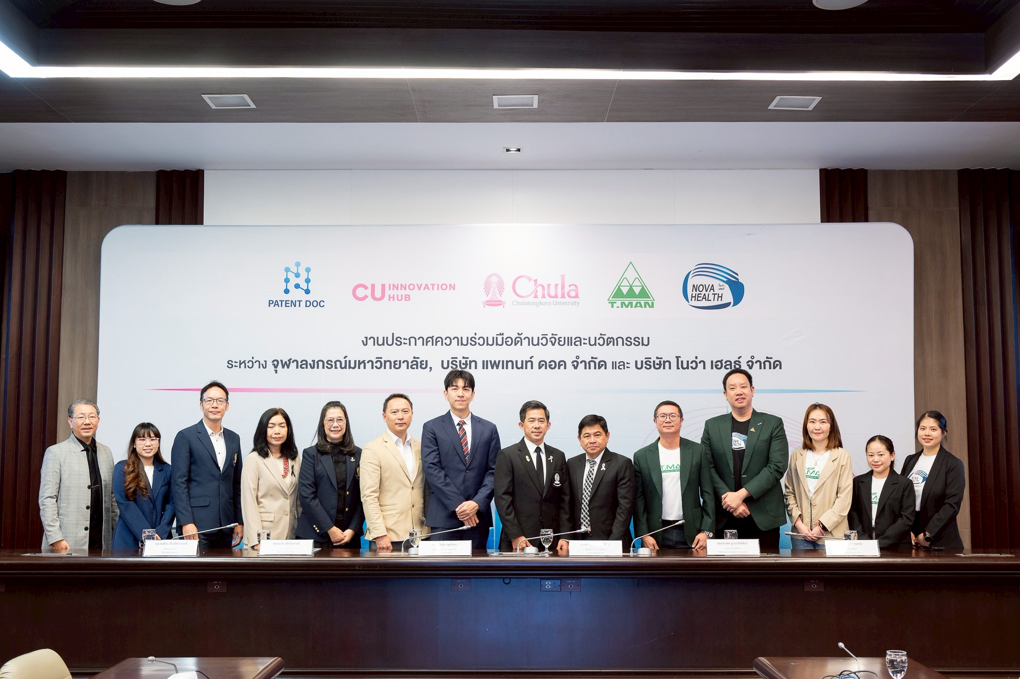 จุฬาลงกรณ์มหาวิทยาลัย ร่วมมือกับบริษัท โนว่า เฮลธ์ จำกัด บริษัทในเครือบริษัท ที.แมน ฟาร์มา ซูติคอล จำกัด (มหาชน) และบริษัท แพเท้นท์ ดอค จำกัด จัดงานประกาศความร่วมมือด้านวิจัยและนวัตกรรม เมื่อวันที่ 22 มกราคม 2569 ณ ห้อง 202 อาคารจามจุรี 4 เพื่อแสดงเจตนารมณ์ในการผนึกกำลังระหว่างสถาบันการศึกษากับภาคเอกชน ในการพัฒนางานวิจัย เทคโนโลยี และนวัตกรรมที่สามารถนำไปใช้ประโยชน์ได้จริง ทั้งในเชิงพาณิชย์และเชิงสังคมอย่างเป็นรูปธรรม โดยมี ศ.นพ.รังสรรค์ ฤกษ์นิมิตร ผู้ช่วยอธิการบดี ด้านนวัตกรรม จุฬาลงกรณ์มหาวิทยาลัย คุณประพล ฐานะโชติพันธ์ ประธานเจ้าหน้าที่บริหาร บริษัท ที.แมน ฟาร์มาซูติคอล จำกัด (มหาชน) และคุณธนวัต เทิดวิกรานต์ กรรมการผู้จัดการบริษัท แพเทนท์ ดอค จำกัด เป็นประธานในงานประกาศความร่วมมือครั้งนี้ ในงานนี้ ศ.ดร.บัญชา พูลโภคา ผู้ช่วยอธิการบดี ด้านงานพัฒนาวิจัย จุฬาฯ ร่วมในงานประกาศความร่วมมือครั้งนี้ด้วย